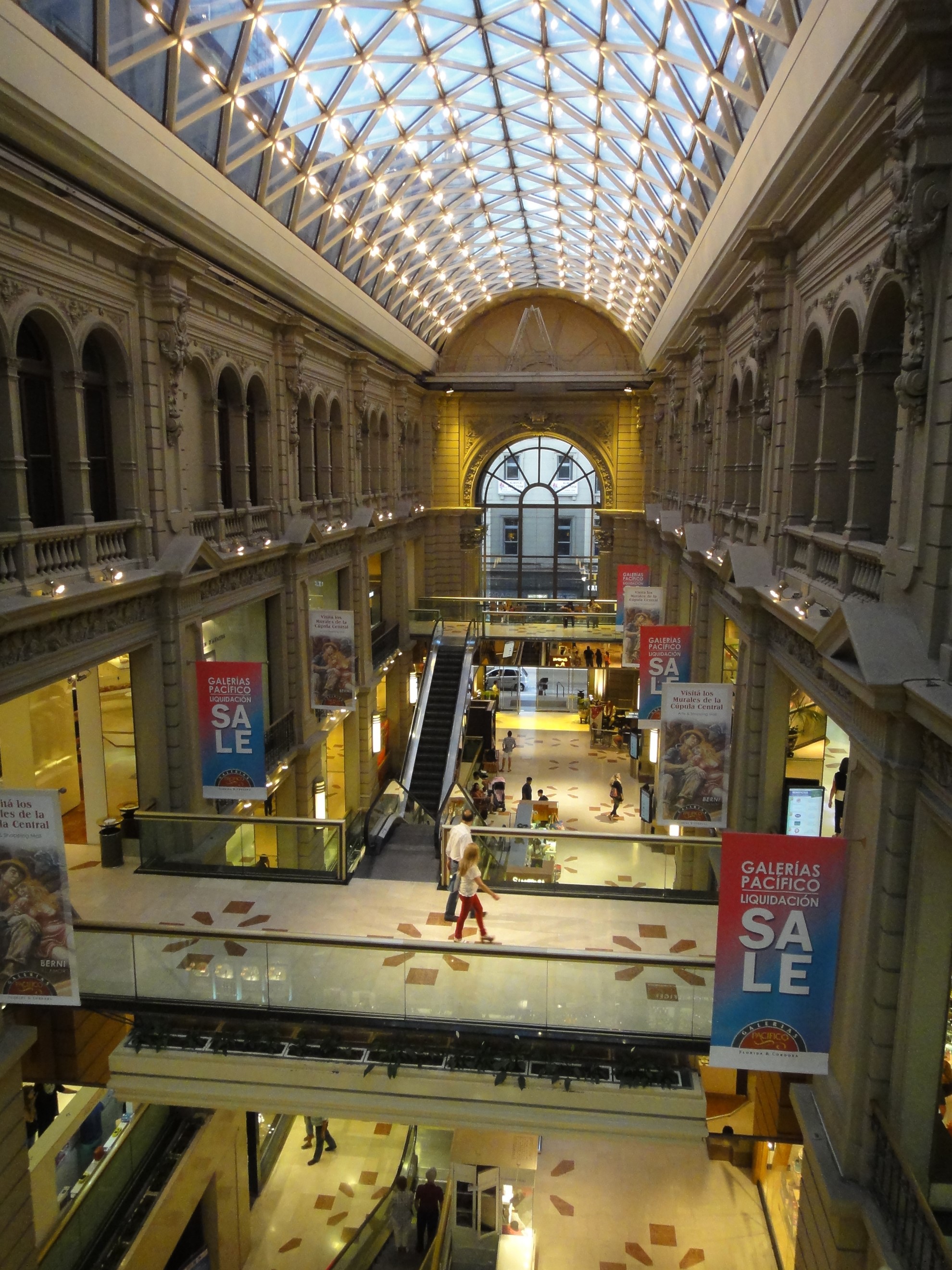 步行到太平洋拱廊賣場,很漂亮的賣場,上次來的時候有在樓上上探戈課,找了半天果真還在呢。這麼美麗的賣場,卻都是賣很本地的品牌,這阿根廷我們還沒看到國際名品呢,猜測是因為匯率問題,這些進口品都格外昂貴,一般人應該買不起,跟香港隨處是名牌店相比,真是差很多。