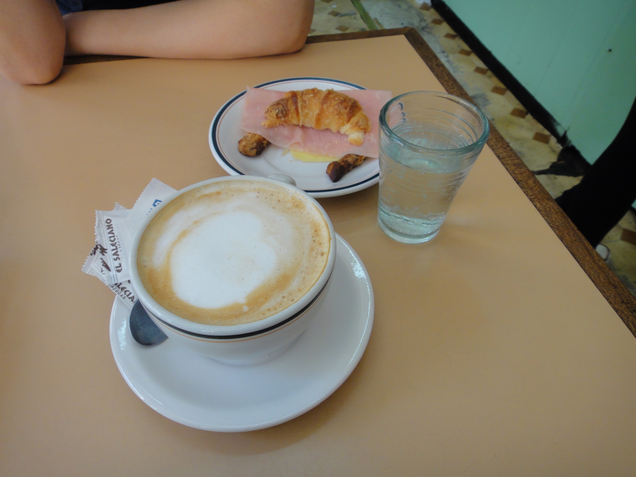 上私人課前,來附近的簡單咖啡店等上課,叫了最常見的Medialuna, 就是帶甜的牛角,每個咖啡店都有,每家做法都不同,大小各異,是最常見的早餐