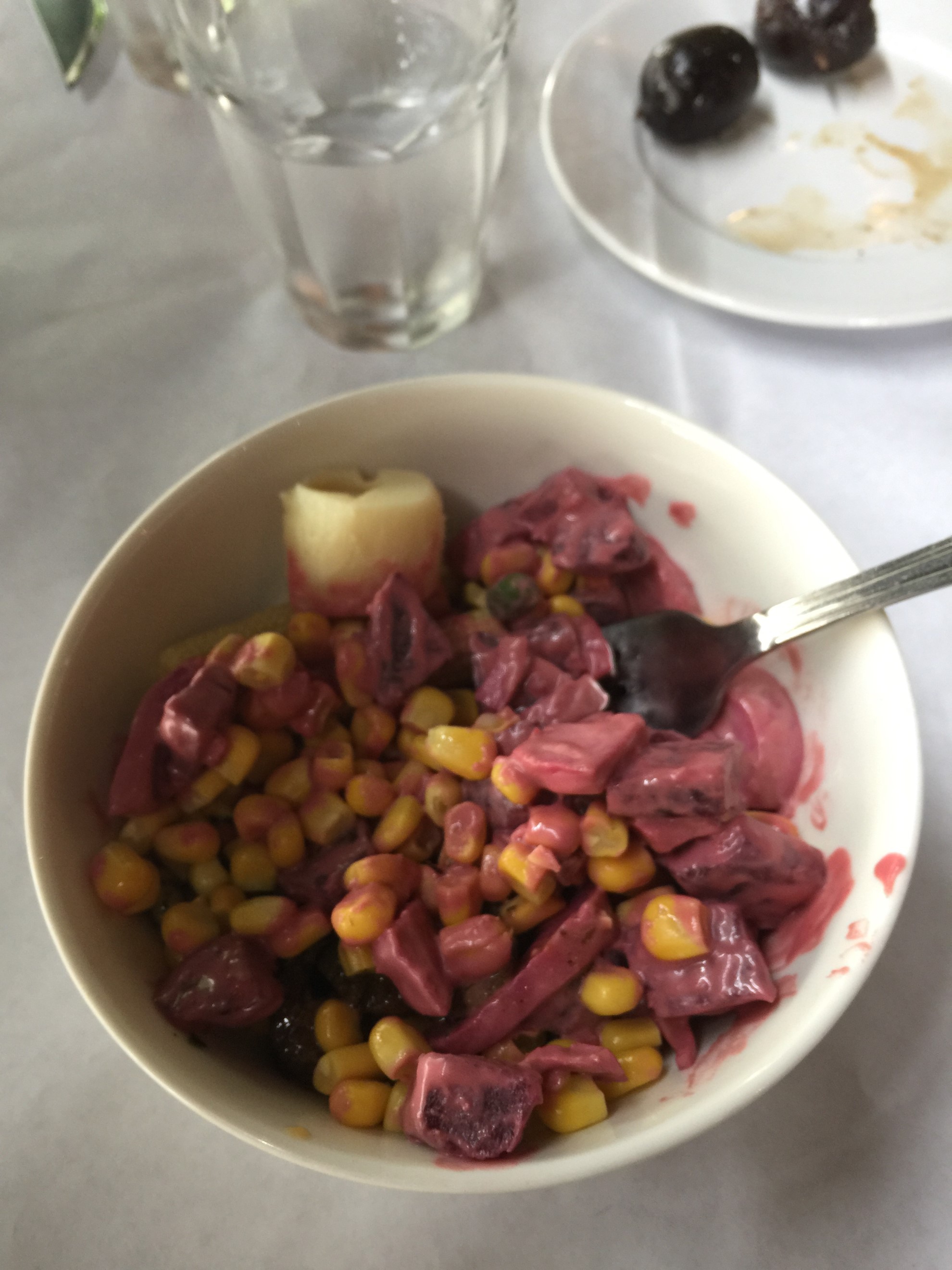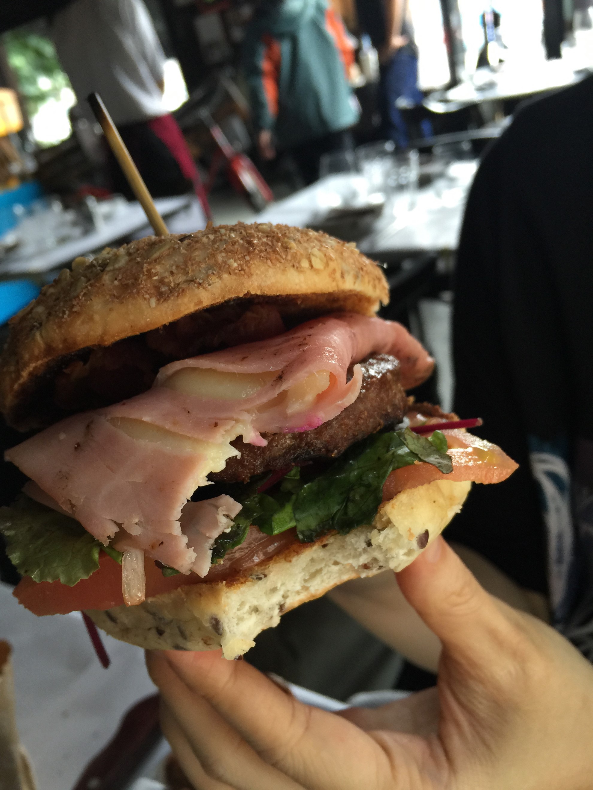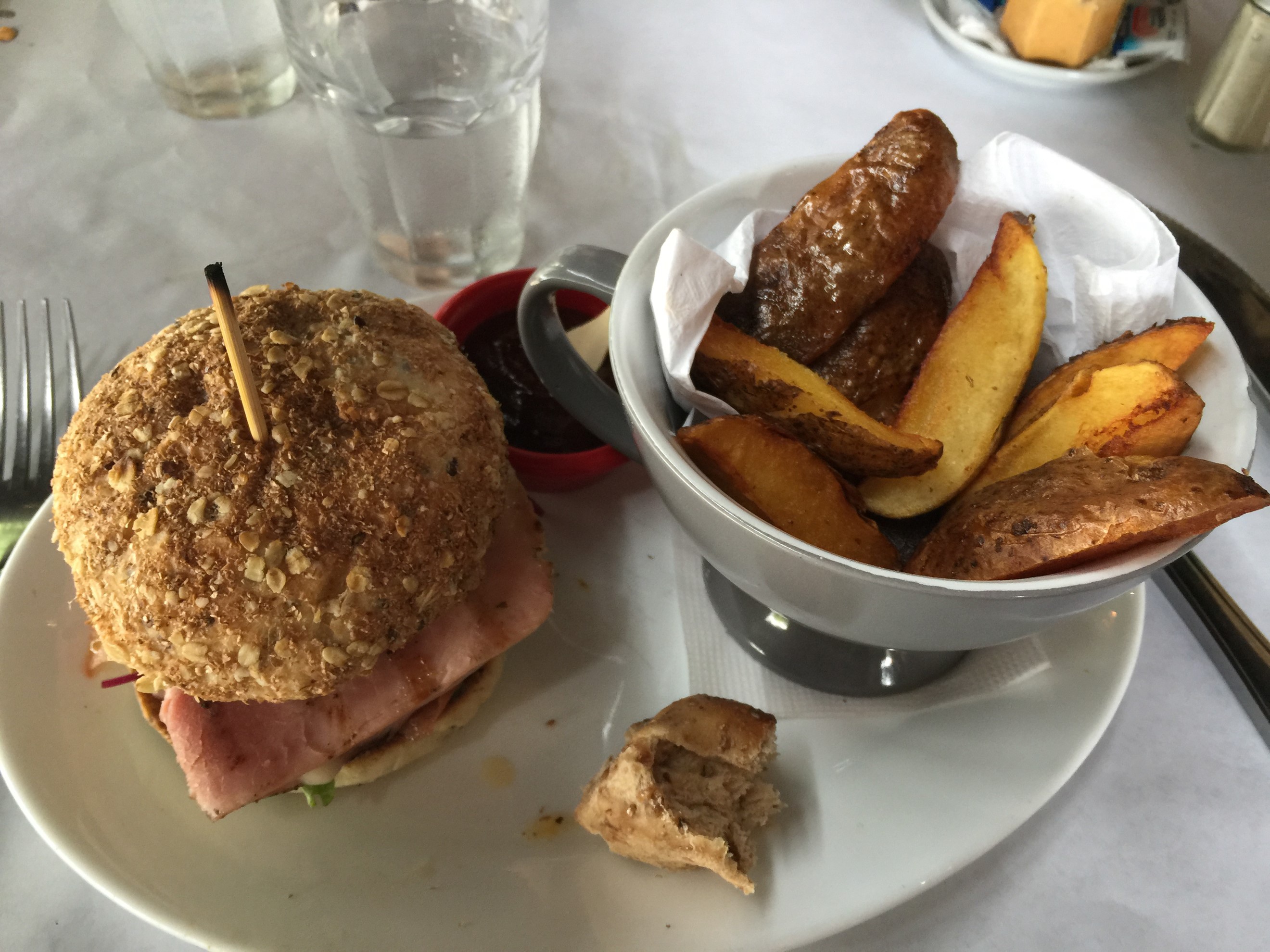 這次專為了沙拉吧來,原本只想點沙拉吧,但是一份沙拉吧100披索,發現一份三明治才90,漢堡也才110…這是甚麼定價策略啊! 於是我們就各點一份,然後分量還是超級的大耶,這邊只要是跟肉有關的就很便宜啊!