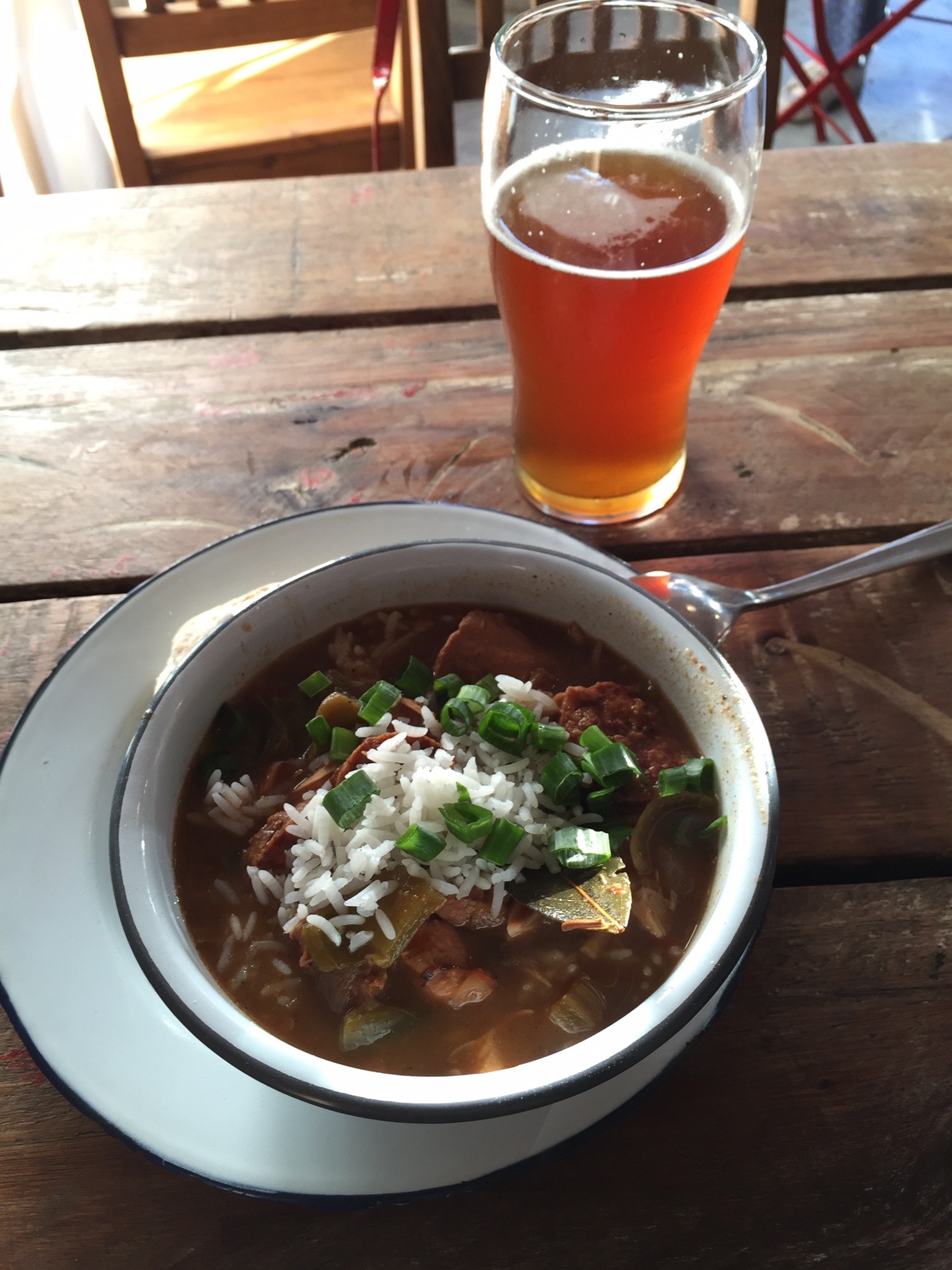 很想吃點米飯,但又不想去中國餐廳,找了這間小酒館,買紐奧良菜,有一道菜是Gambo, 很像墨西哥風味的湯汁裡面泡飯,好好吃喔,這間店很妙的是都是老外光顧,還有炸雞跟炸雞漢堡,看得我流口水…