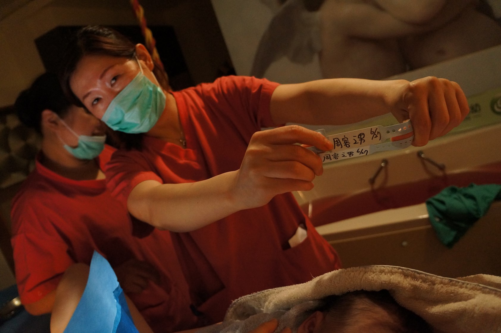 我最後一次大用力時是閉著眼睛,張開眼後迫不及待要擁抱寶寶,卻發現產池裡怎麼都變成紅色的水,內心還在那悶兒我有流這麼多血嗎? 但當下看到這黑溜溜的小生物很感動好想趕快抱入懷中,來不及追究,過了好一陣子我才知道原來臍帶被扯斷啦! 我心目中理想的畫面是 - 寶寶在微暗的燈光中出生,由親人接生後馬上抱到爸爸媽媽的懷中,在這溫柔的氛圍中寶寶緩緩的張開眼睛,在這世上第一個看到的人就是爸爸和媽媽,之前看【溫柔生產】一書時曾看到描述醫師們如何被這神奇的一刻而感動,可惜這想像中的美好畫面無法被實現;另一點很可惜的是我寶貴的臍帶血就這樣浪費了! 原本我們計畫書內容是要延後斷臍,等到沒脈搏後再由爸爸斷臍的…這時醫生馬上解釋說真不應該讓爸爸間接接生的、臍帶可能太脆太短等等等,我其實覺得會發生這種狀況或許是因為醫生為了要實現跟我們的約定急著想要把寶寶抱給爸爸過程中把期待扯斷了,當然也有很多其他的可能,但我因為肯定許醫生「願意對於本來不同意的爸爸接生一事提供折衷的解決辦法」,所以我並不想歸責於任何人,雖然不滿意但反正發生的已經發生了,只是希望看到這篇文章的朋友們和樂寶兒的醫生們能夠從中獲得些經驗,且希望樂寶兒在此事件後累積經驗並能夠讓爸爸親手接生或是協助爸爸接生,我充分相信爸爸接生就像媽媽生小孩一樣是天生的能力,稍稍協助就可做的很好。
