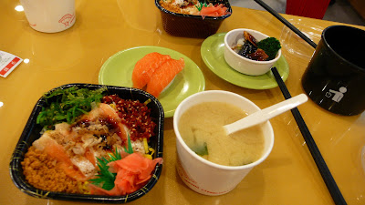 爭鮮真的有很大的進步, 雖然還是離美味很遙遠, 但是至少賣相很讚! 一個鮭魚便當加上味增湯剛好100大洋~~