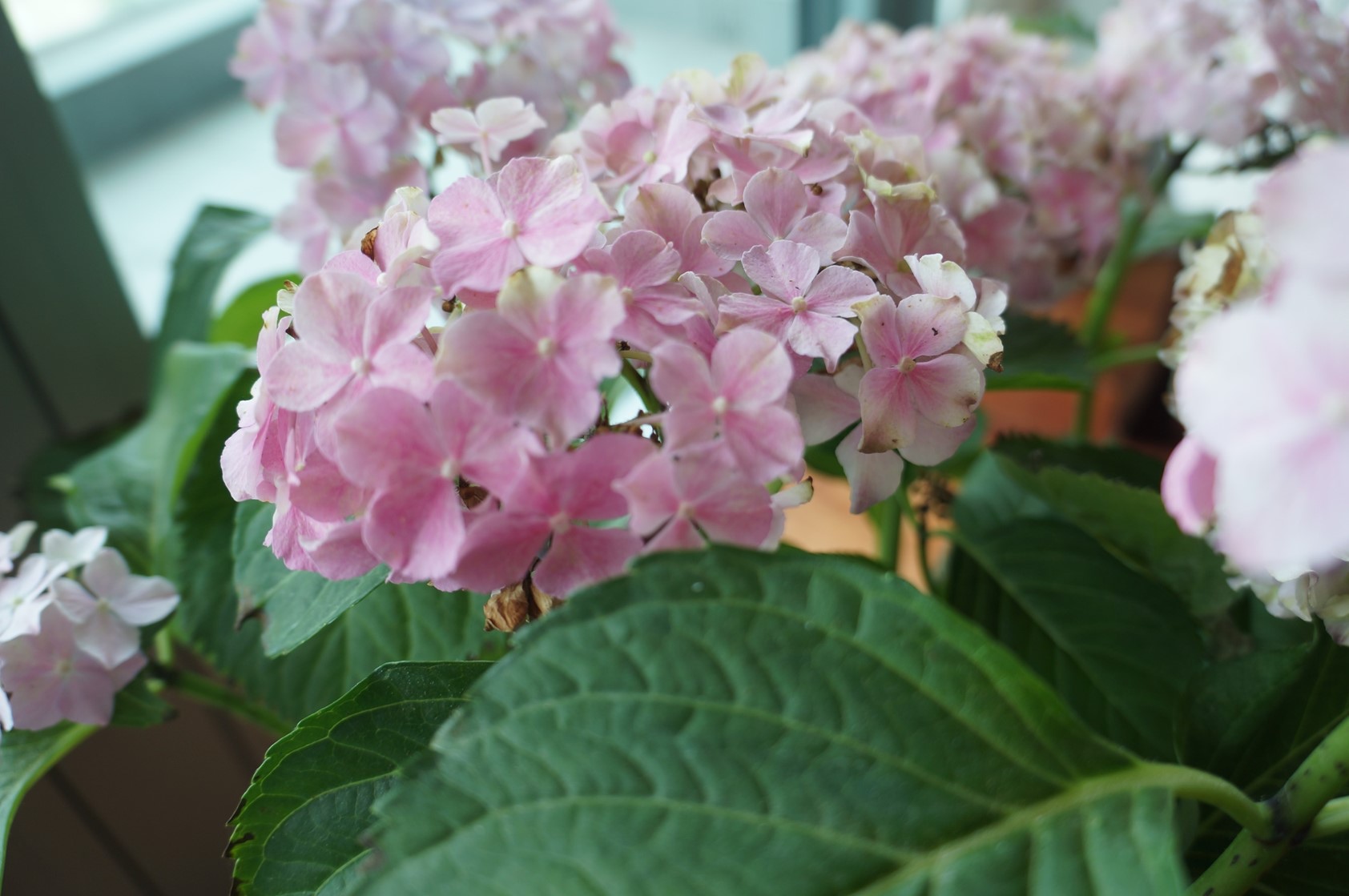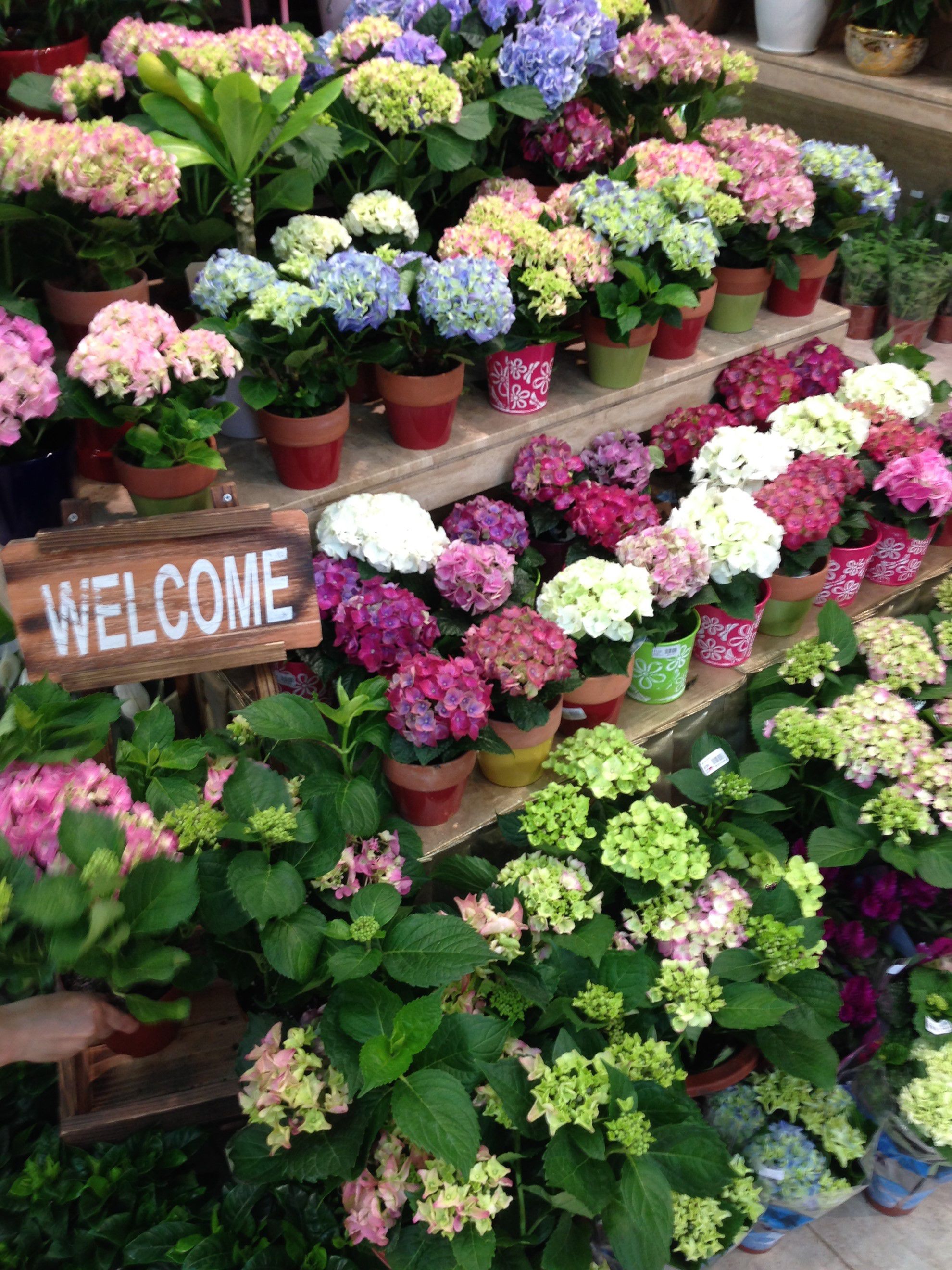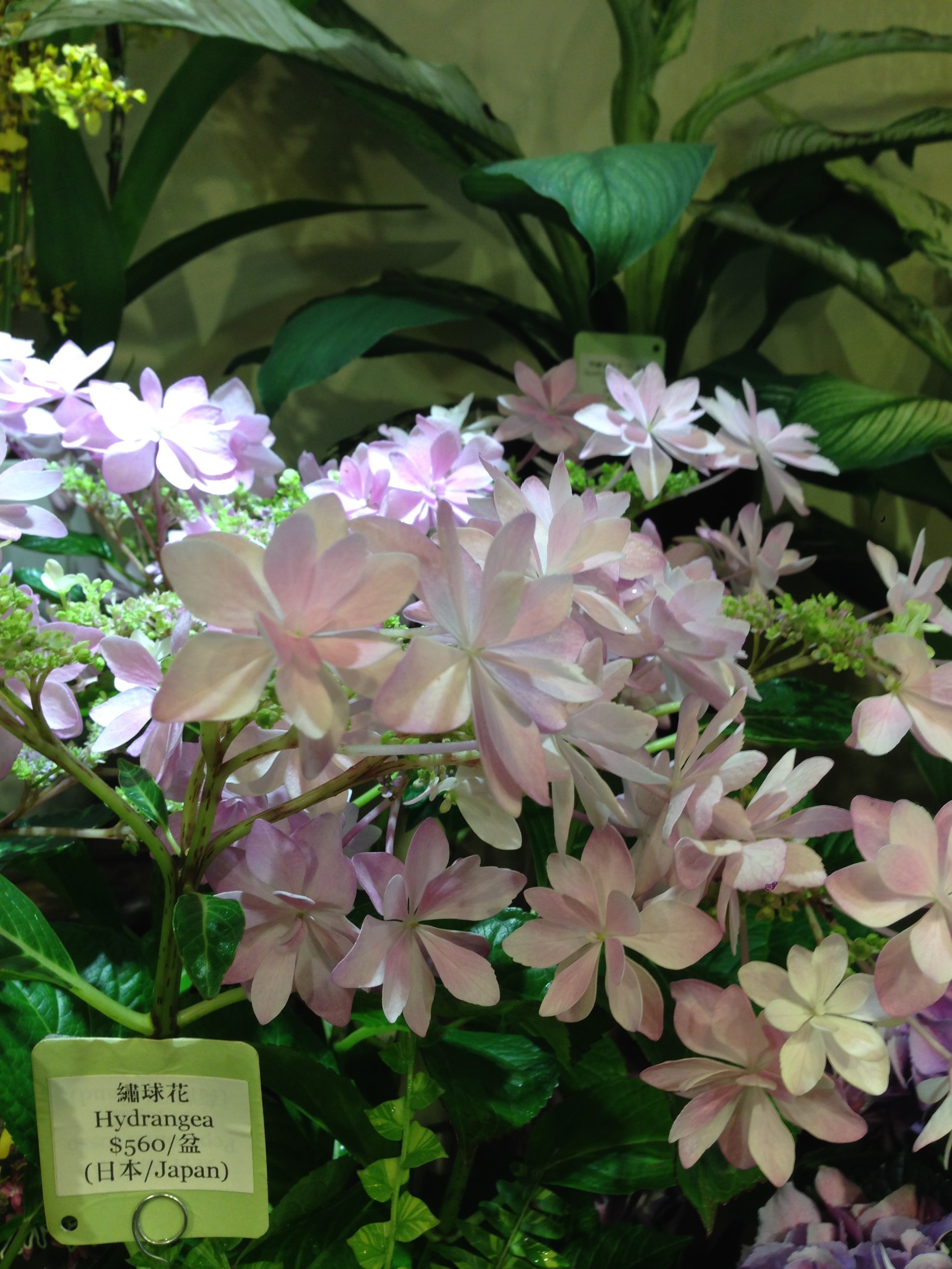 像是下面這盆日本種的繡球花,花瓣就很不一樣,形狀比較尖且很多層次,感覺就很優雅細緻