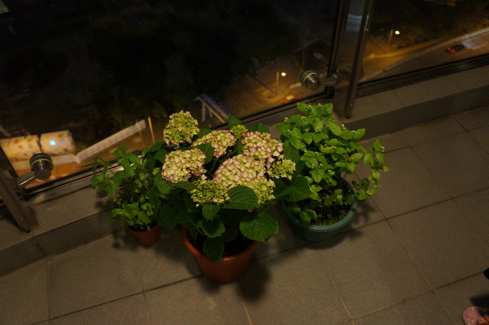 總共帶回來三個新成員,下面的繡球花,特別選了香港種的,另外還有很美的藍色讓我很心動,但是是荷蘭種的,店家小姐很誠懇的告訴我荷蘭來的比較怕熱,難得在香港碰到如此有禮貌的店員,馬上決定一定要跟他買東西,另外還帶了一株茉莉花和九層塔回來,是說每次想做三杯路線的食物都找不到九層塔,只好買樓下貴鬆鬆的羅勒勉強填補空虛,只是希望他能活久點阿!