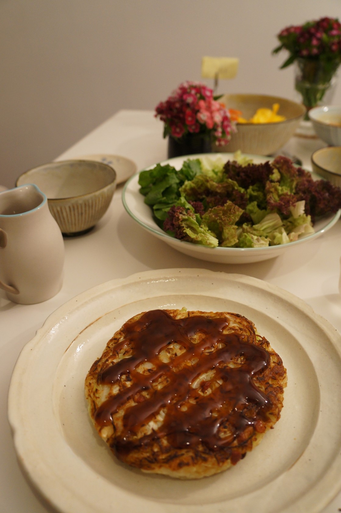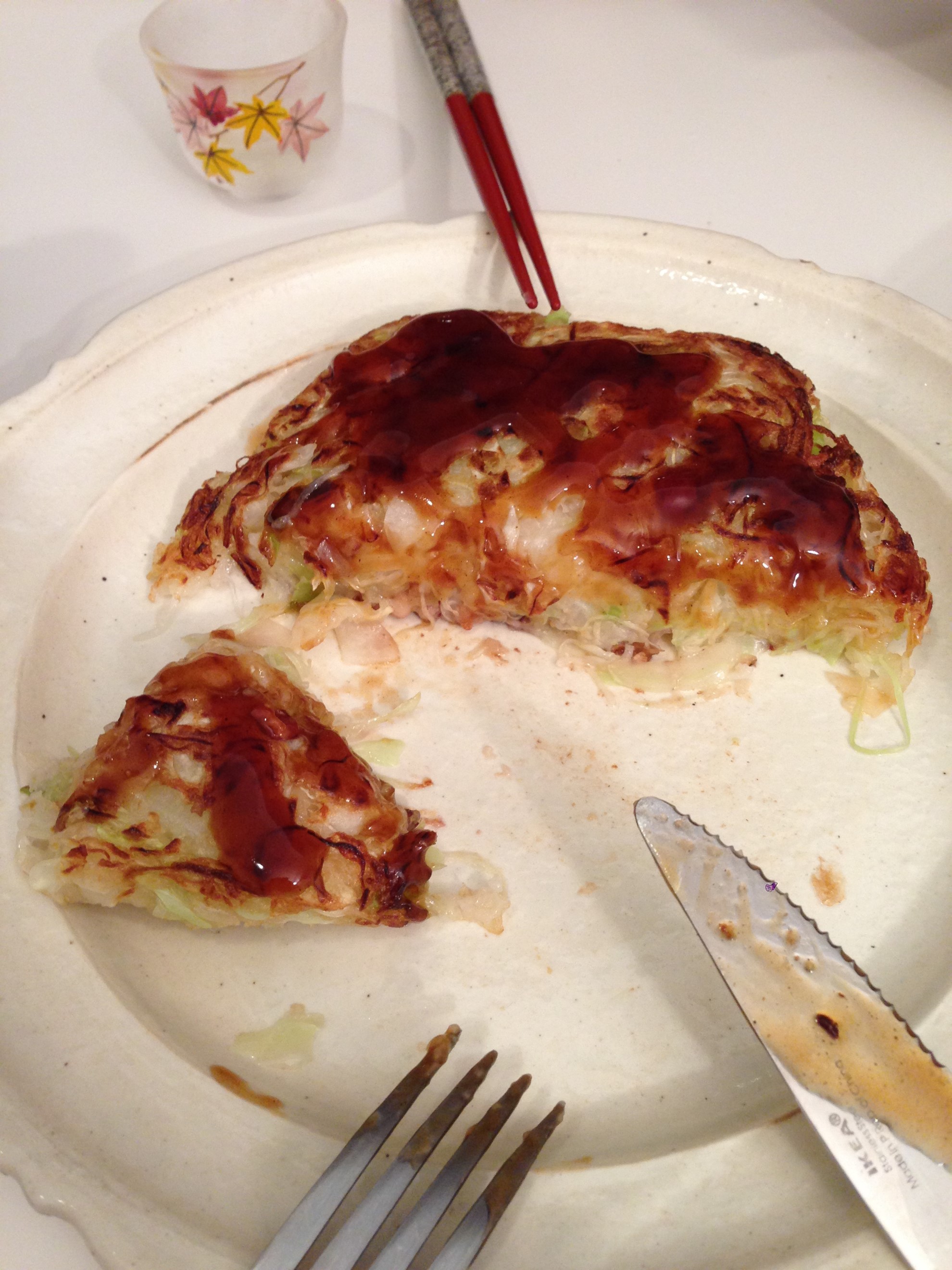 不只我哈日,M這天很想吃大阪燒,我們剛好發現了一個新的日本超市-一田超市,買了日本種的高麗菜和醬料,少了柴魚片也不錯吃,不過我還是喜歡酥脆的餅,這種軟軟的口感無法滿足啊