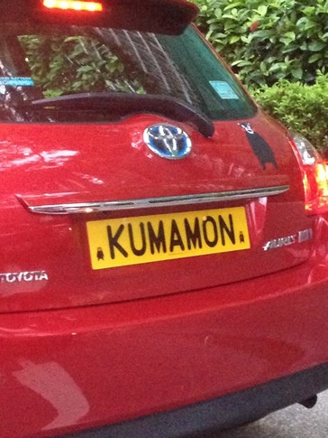 2014.06.21 另一個港人哈日的例子 隔壁車子居然是"雄本熊"的車牌,車頭還有兩隻熊站在那lol