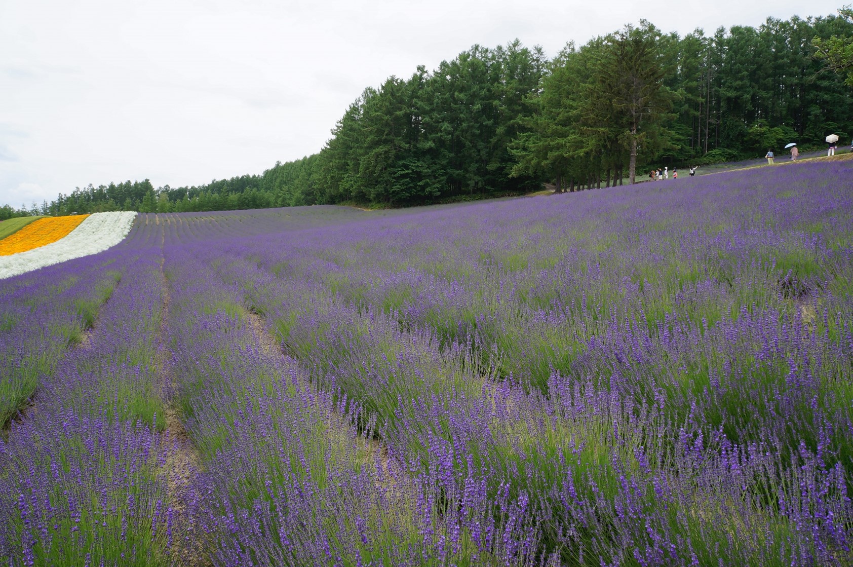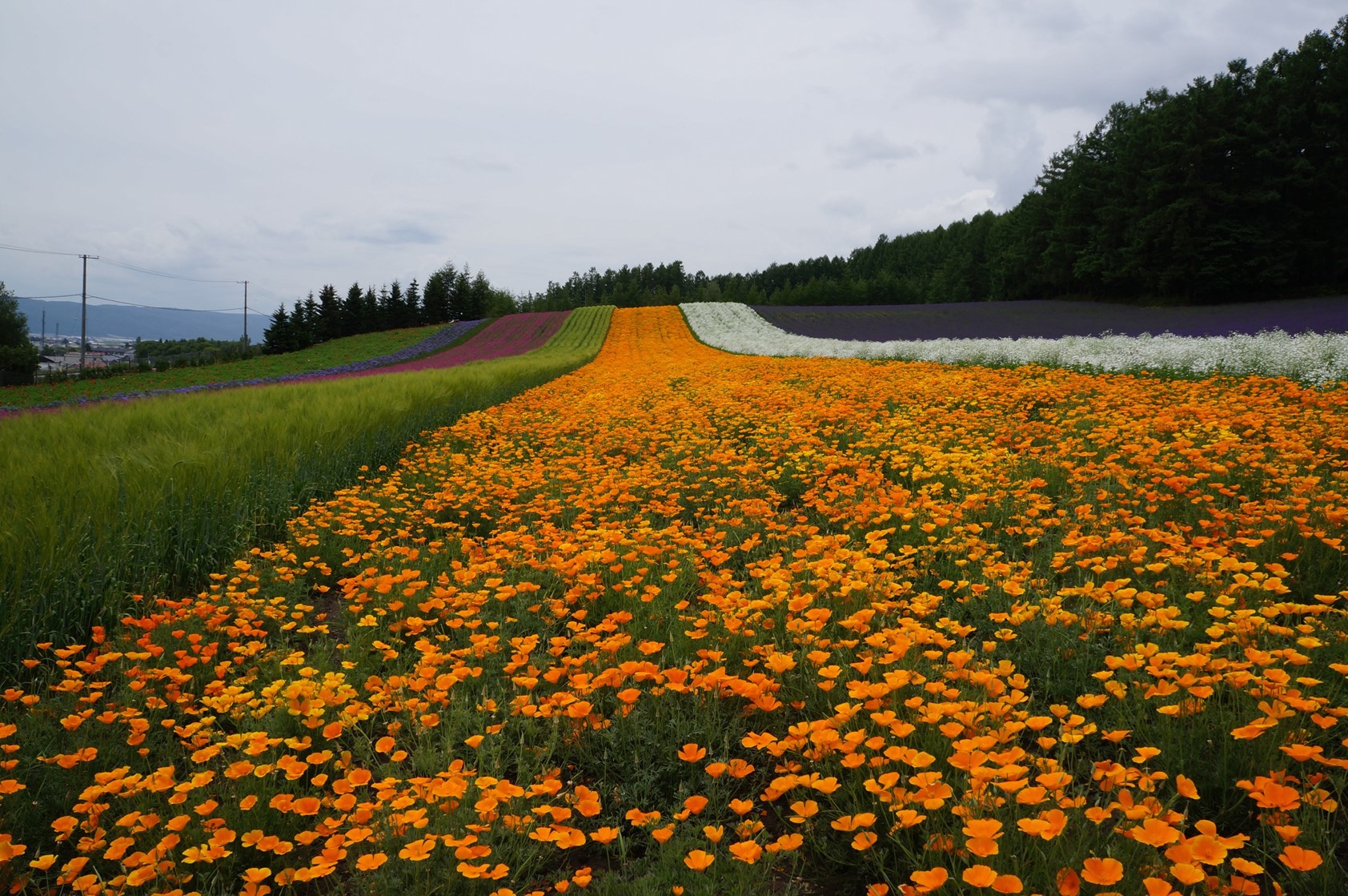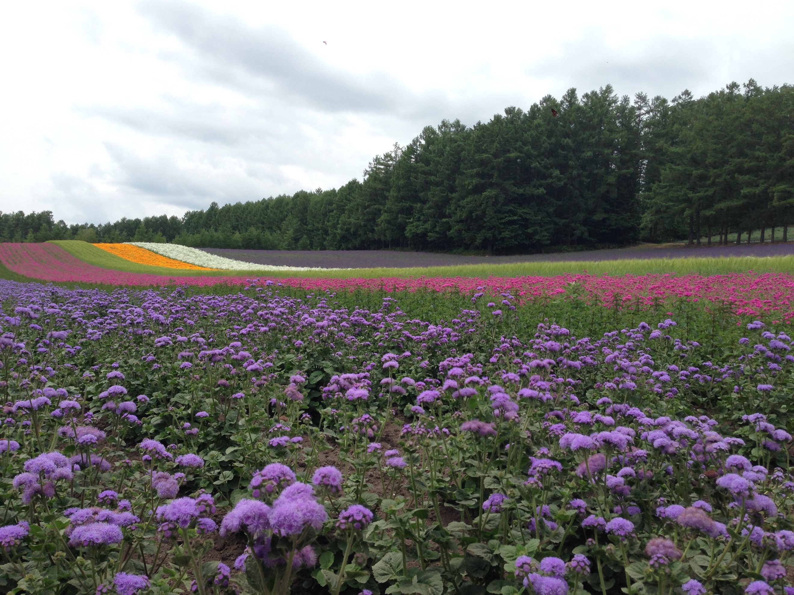 七月中造訪北海道的重頭戲是賞花,看到M多年前六月跟家人來同樣的景點,到處光溜溜的一點花都沒有,這次更加慶幸有見到像是明信片般的花田,又運氣好的碰到乾爽晴朗的天氣,真是美不勝收!