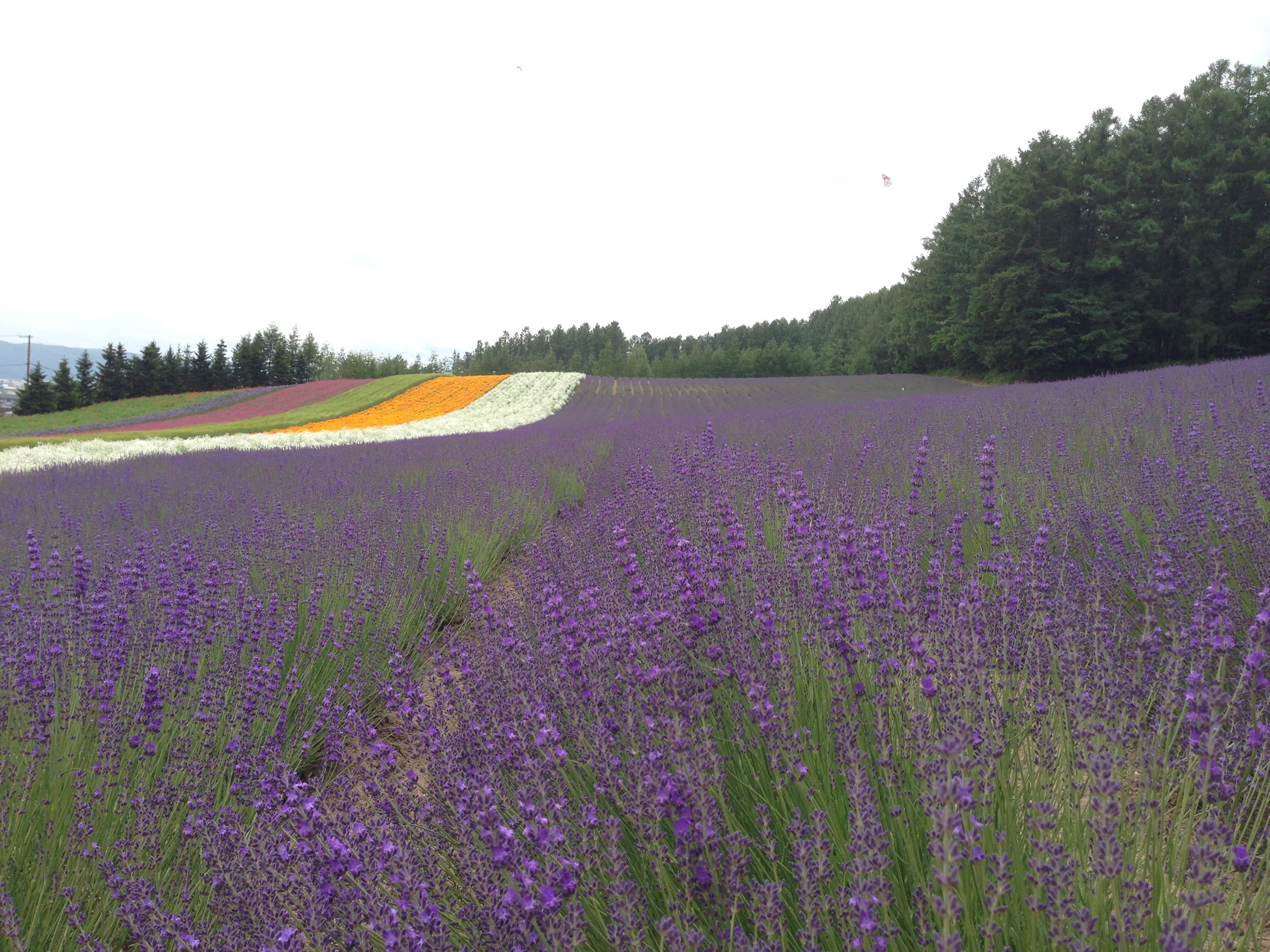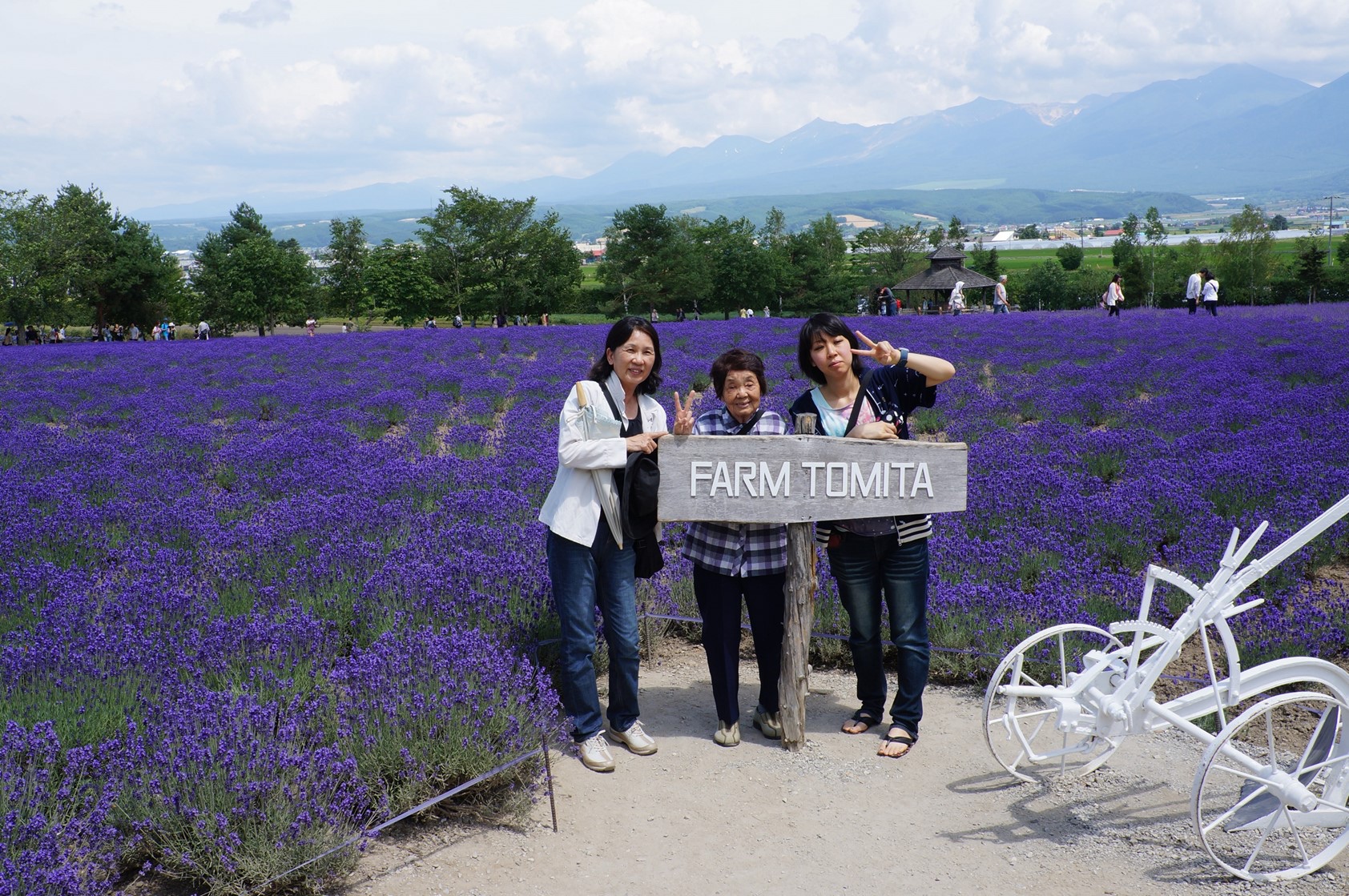 從美瑛開始就一直驚訝連連,不斷地照相傳給我家人的群組炫耀,周老妹說要照出豐盛的花田得從花的角度照,果真是得蹲下來照才不會照到花間的空隙阿。一直殺底片到第五天富田農場才真是一個最大驚嘆號,偌大的花田、數不清的區域,片山遍野不是花就是薰衣草,根本走不完就累了。那天高速公路上看到路標說此處跟馬賽同緯度,怪不得有接近的氣候可以栽種薰衣草,不過買了幾瓶精油回家跟三年前去南法帶回來的一比,還是南法的薰衣草獲勝,不過能在亞洲看到這種數大美景,已經很滿足了阿!