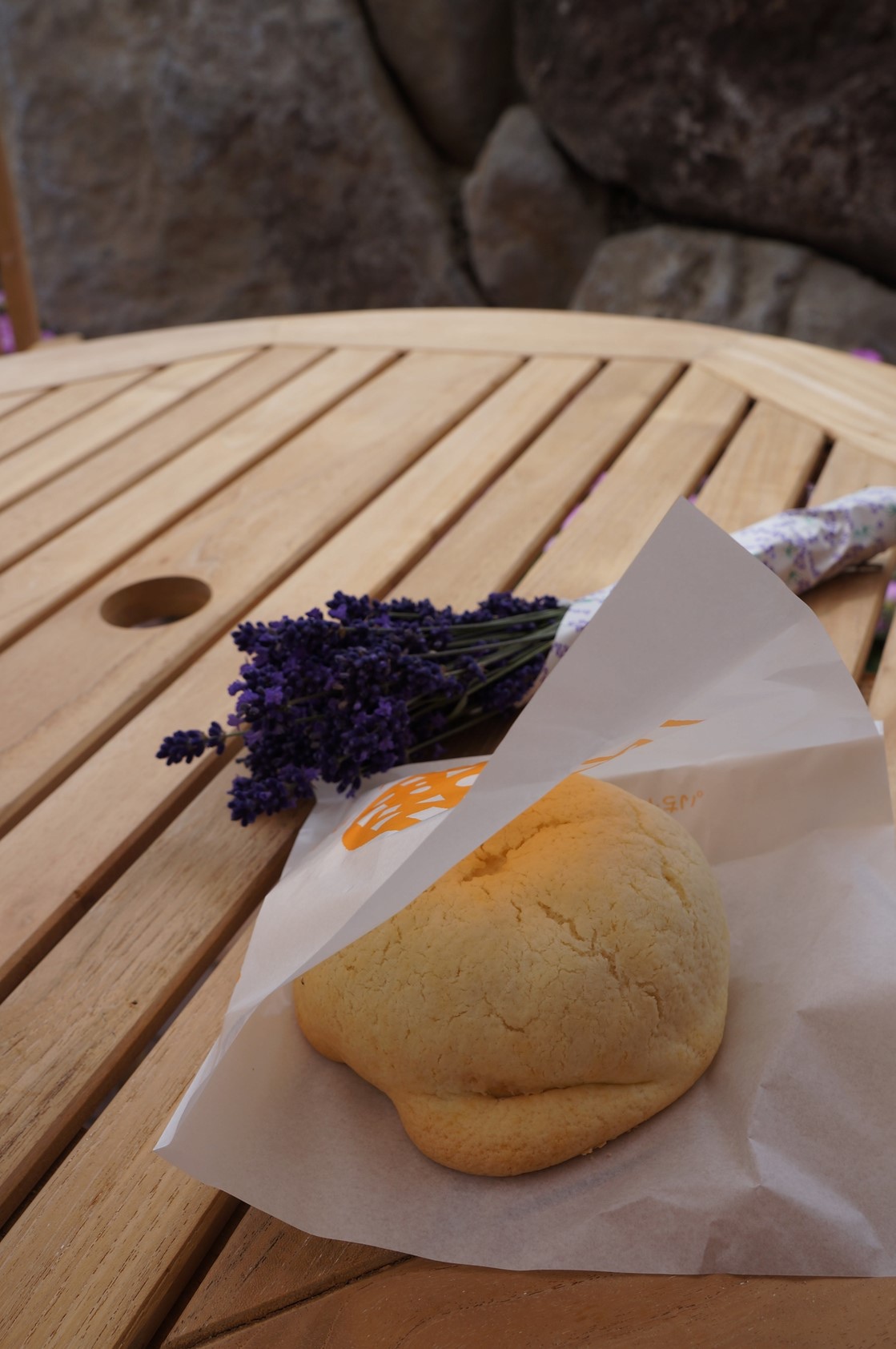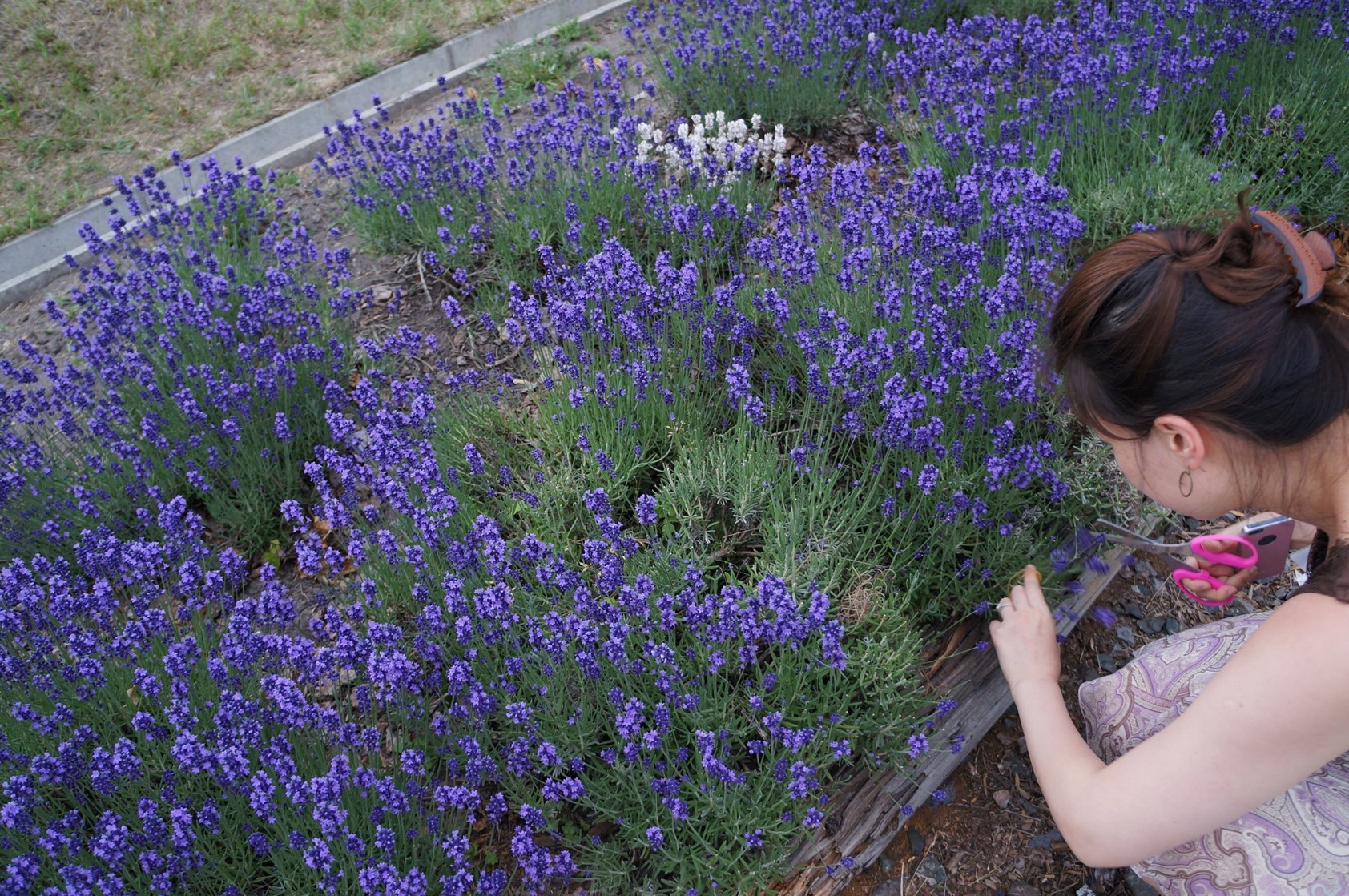 門口的小桌放著幾把剪刀和橡皮筋,原來可以讓客人們隨意剪新鮮的薰衣草帶走耶!! 馬上我們就開心的剪了一小束帶走,放在車上一上車就充滿香氣。