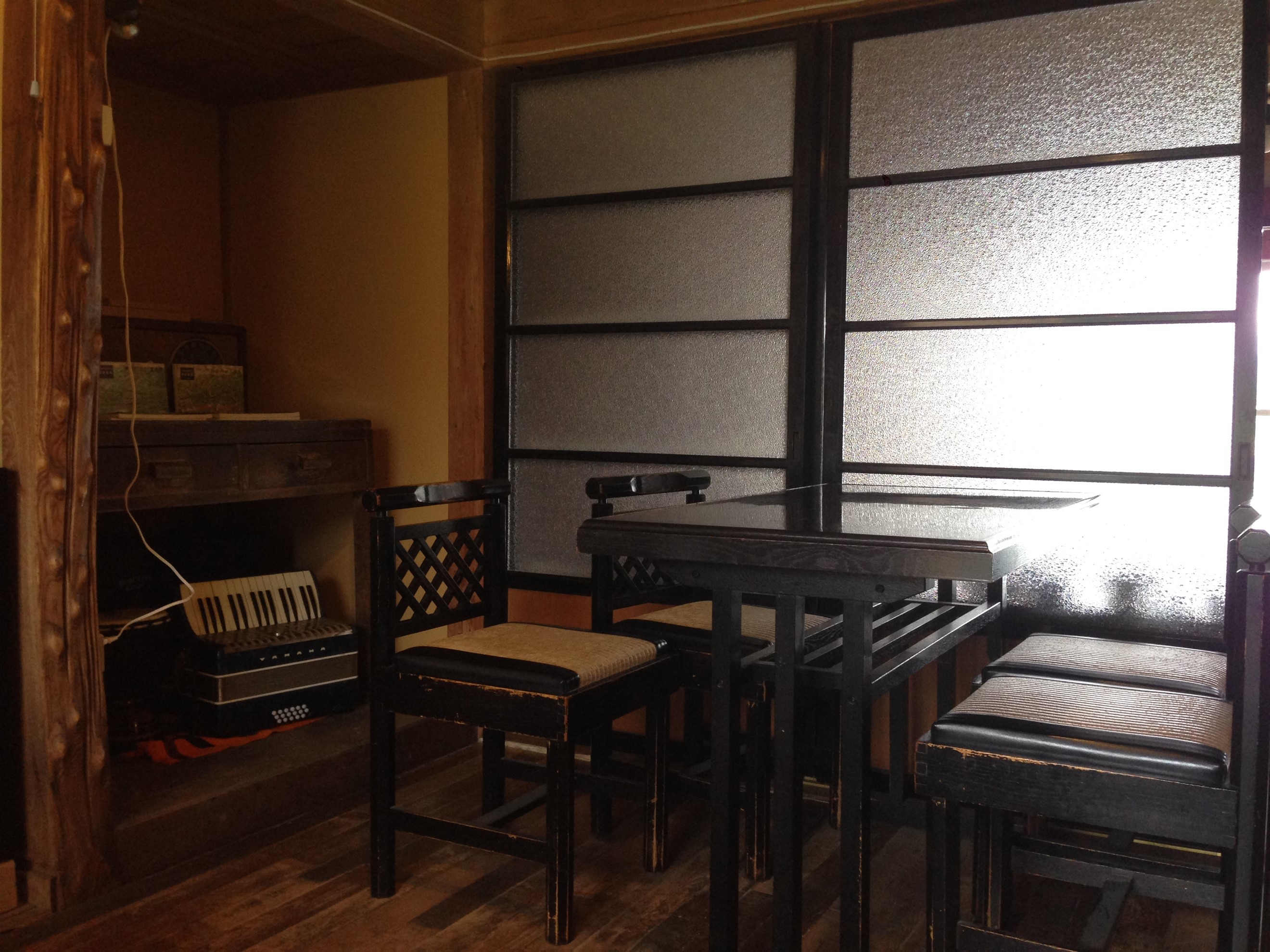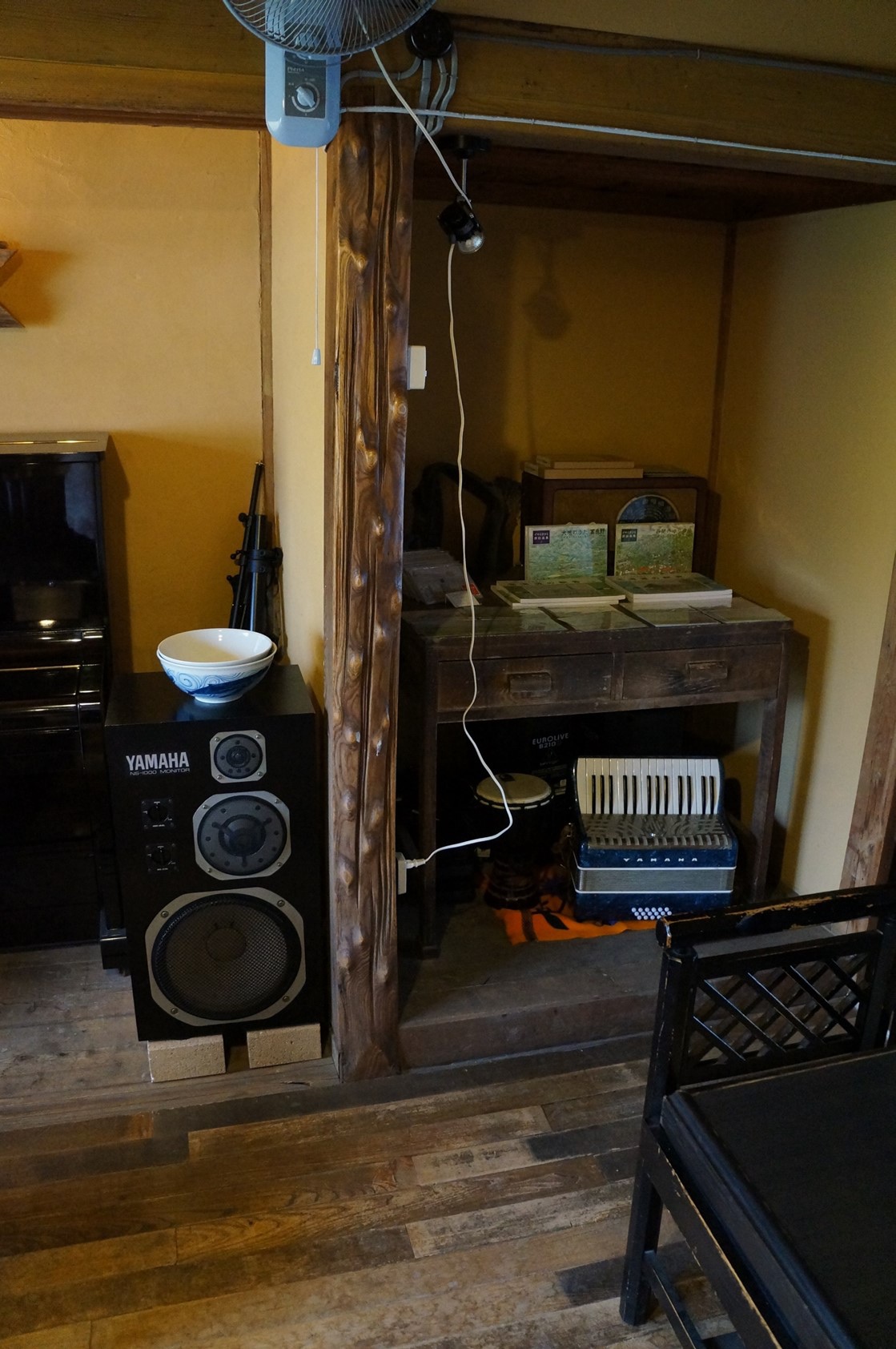 現在放著些骨董樂器的地方,想必以前應該是拉門裡的儲藏空間,也就是小叮噹睡覺的地方吧,呵呵把拉們拿掉改放家具也是妙用。