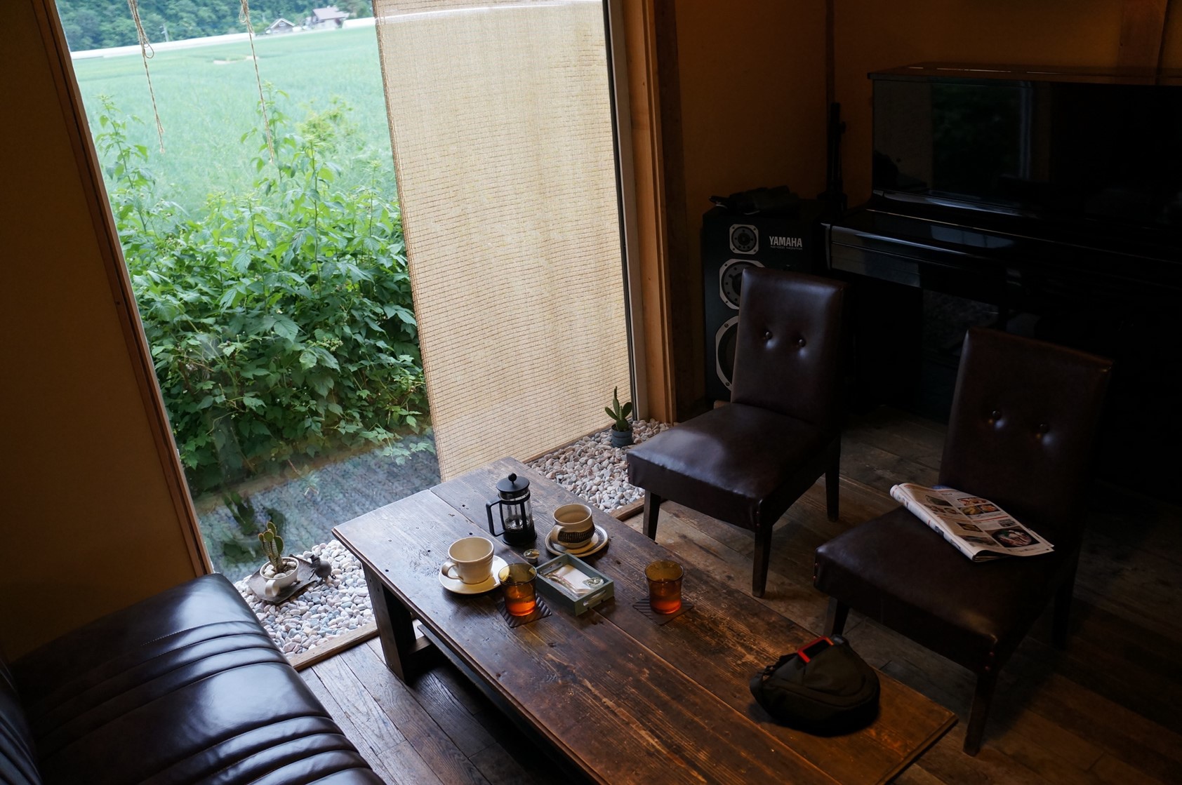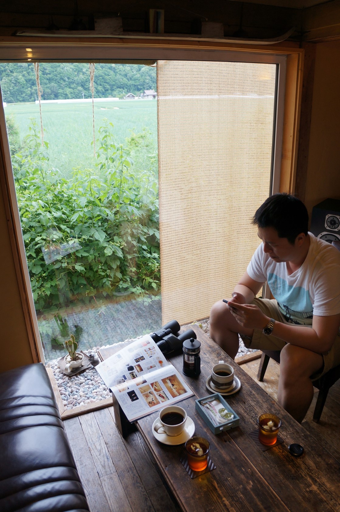 最棒的來囉,我們的位置在咖啡廳的角落,一開始有點昏暗,只覺得太好了離其他客人很遠,可以自在聊天,轉身一看才發現另有文章,玻璃窗外是大片的田耶! 啜飲著咖啡,不知不覺大嬸們已經結帳出門,只剩下我們兩個客人,老闆娘也不知跑到哪裡,我們倆就安靜的坐在這看看雜誌滑手機,還記得音樂放的是爵士鋼琴,音量音質都恰到好處,曬了幾天的太陽我倆都有點累了,這短暫愜意的時光讓我們好放鬆。