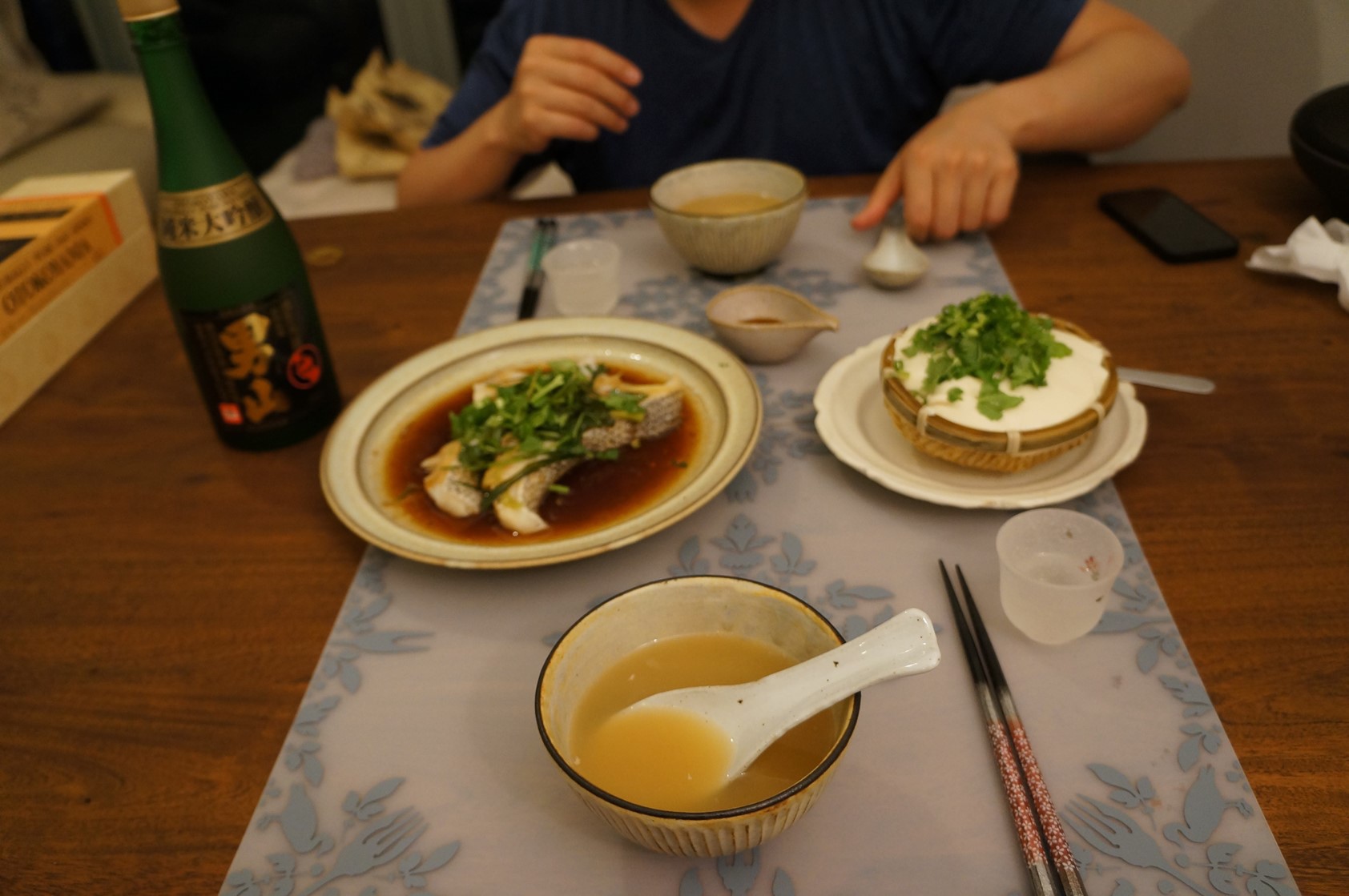 2014.07.14 香港多海鮮,我們卻始終沒有在家做過,買魚好像是需要很大的勇氣一樣,又怕買貴又怕買不新鮮,這天在樓下超市鼓起勇氣買了一隻倉魚,海鮮都不便宜,我也不知道買算貴還是不貴,用大同電鍋上加不銹鋼蒸籠,蒸好後再起油鍋熱點醬麻油淋上蔥薑絲,簡單美味,覺得真是該早一點嘗試阿。