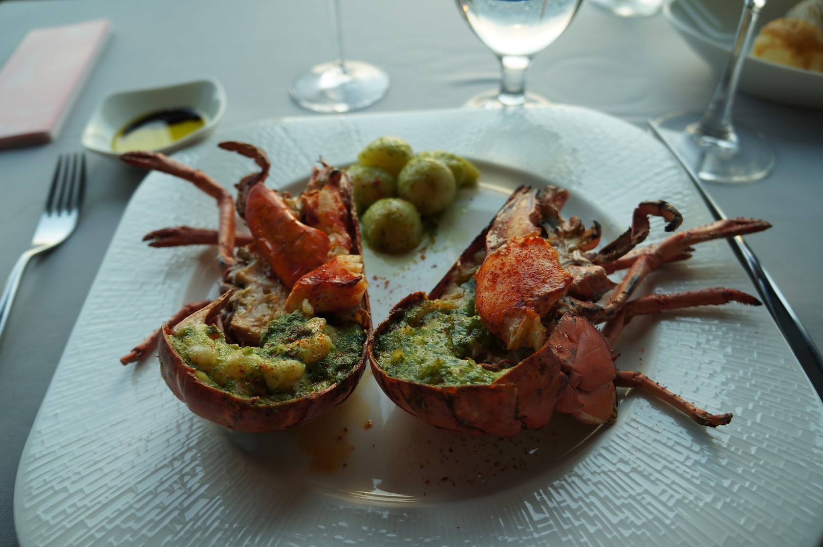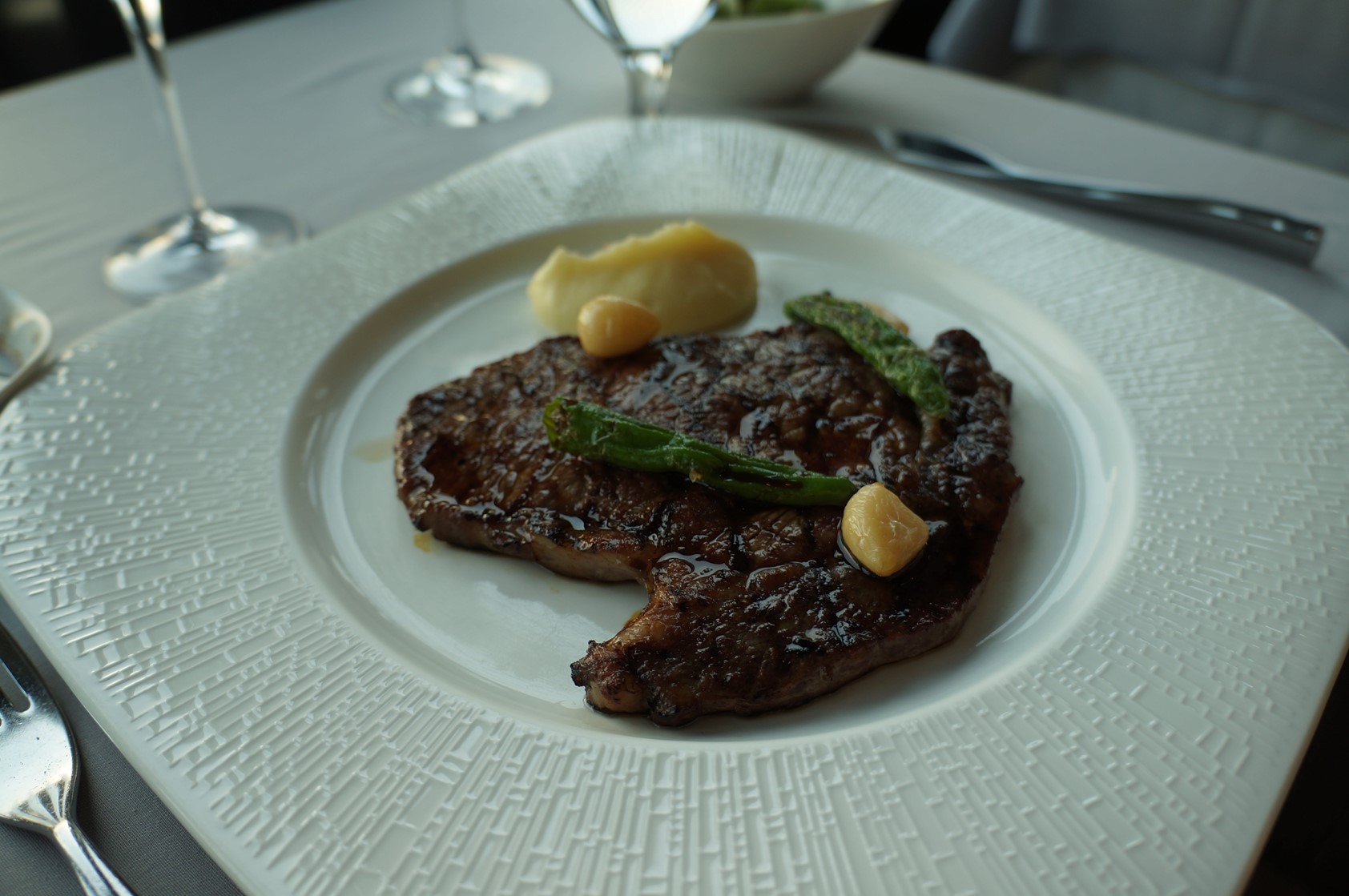 我們沒有點他們的情人套餐,我之前看菜單有看到整隻烤龍蝦,是Michael的最愛,於是他點了套餐然後主菜選龍蝦,我則是選USA Rib eye. 為什麼不選韓牛? 因為昨天吃了高價韓牛卻不覺得有啥特別,還是選簡單點的吧。結果龍蝦真是很不錯,牛肉很卻不怎麼樣。其他的餐飲都算中等,但價格可是不便宜喔,兩人吃下來也大約310,000韓元。這種消費已經可以去米其林餐廳囉。不過這種餐也算是當觀光客的一個體驗之一,重點是壽星開心就很值得。