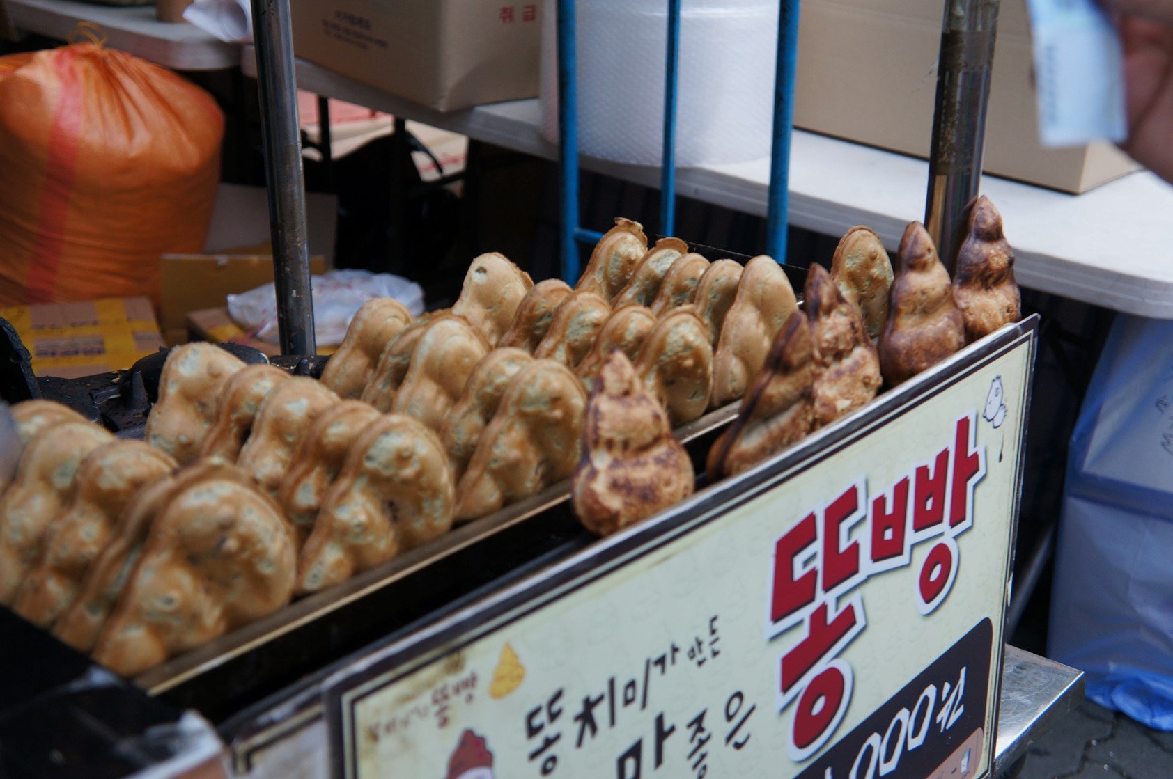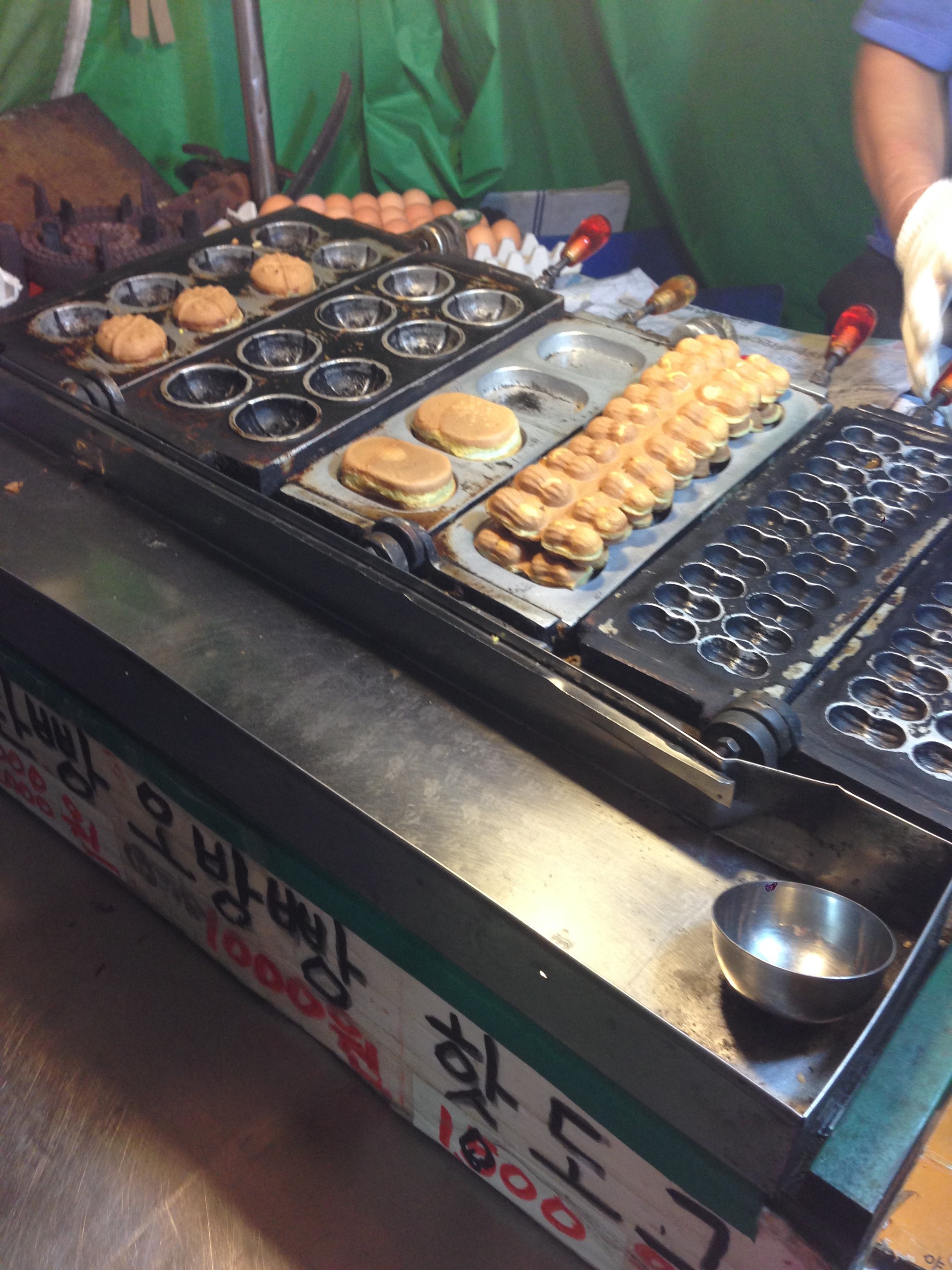旁邊發現了一直在尋找的雞蛋糕, 之前M看康熙來了,小S有講過以前來韓國有吃到裡面但是半熟的雞蛋糕多麼好吃,我們始終沒找到,可是這個雞蛋糕大概因為放了一陣子,裡面的蛋也都全熟了。