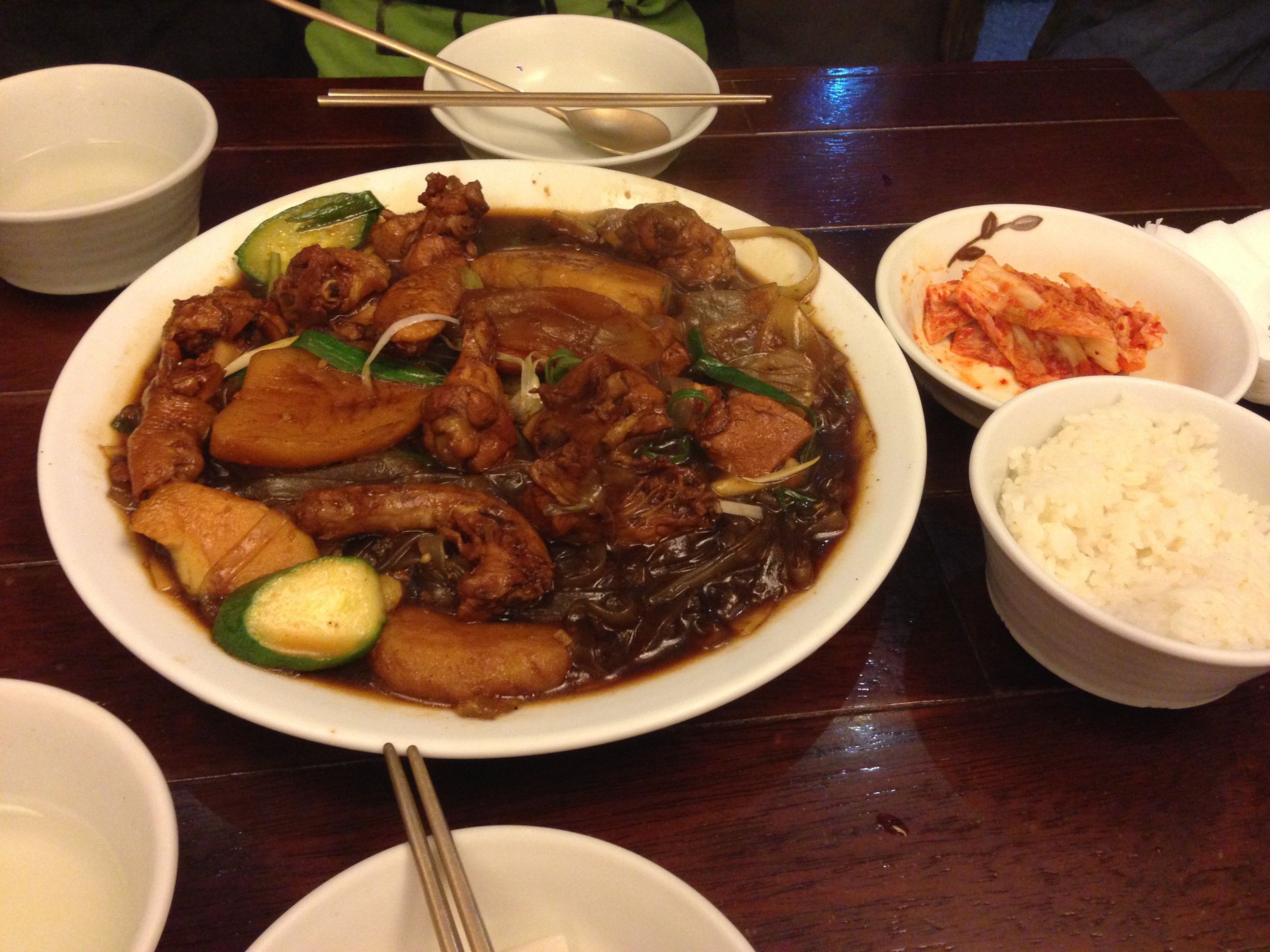 這間餐廳也有會講中文的店員,跟我們解釋這只有賣鳳雛燉雞,我們也不用費神點菜,基本上就是決定點幾人份和飲料就好。想說經營這種餐廳售價也不高,看別桌很多人就是一整盤邊吃邊喝可以吃很久,這樣會賺錢嗎? 基本上還算蠻香的,兩人份雞肉也不太多,很適合我們先填填肚子還要續攤的概念。裡面還有粉條,沾滿了醬汁很香但也很鹹。