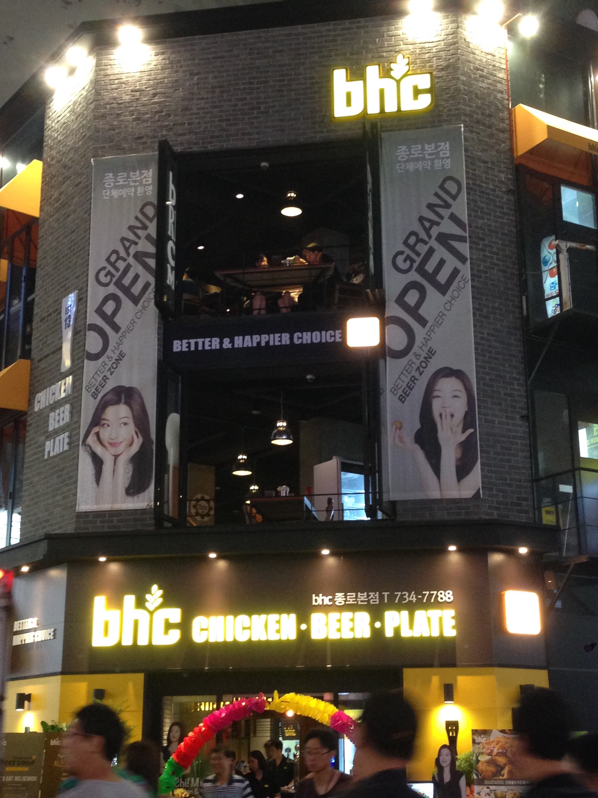 這家要講一下,是全智賢代言的炸雞店耶!! 不知道她自己有沒有投資,整間店充滿了她的廣告,不過看一下圖片好像比較是那種一盤把炸雞跟別的東西混合起來上菜的新式吃法,有點像Fridays的感覺。