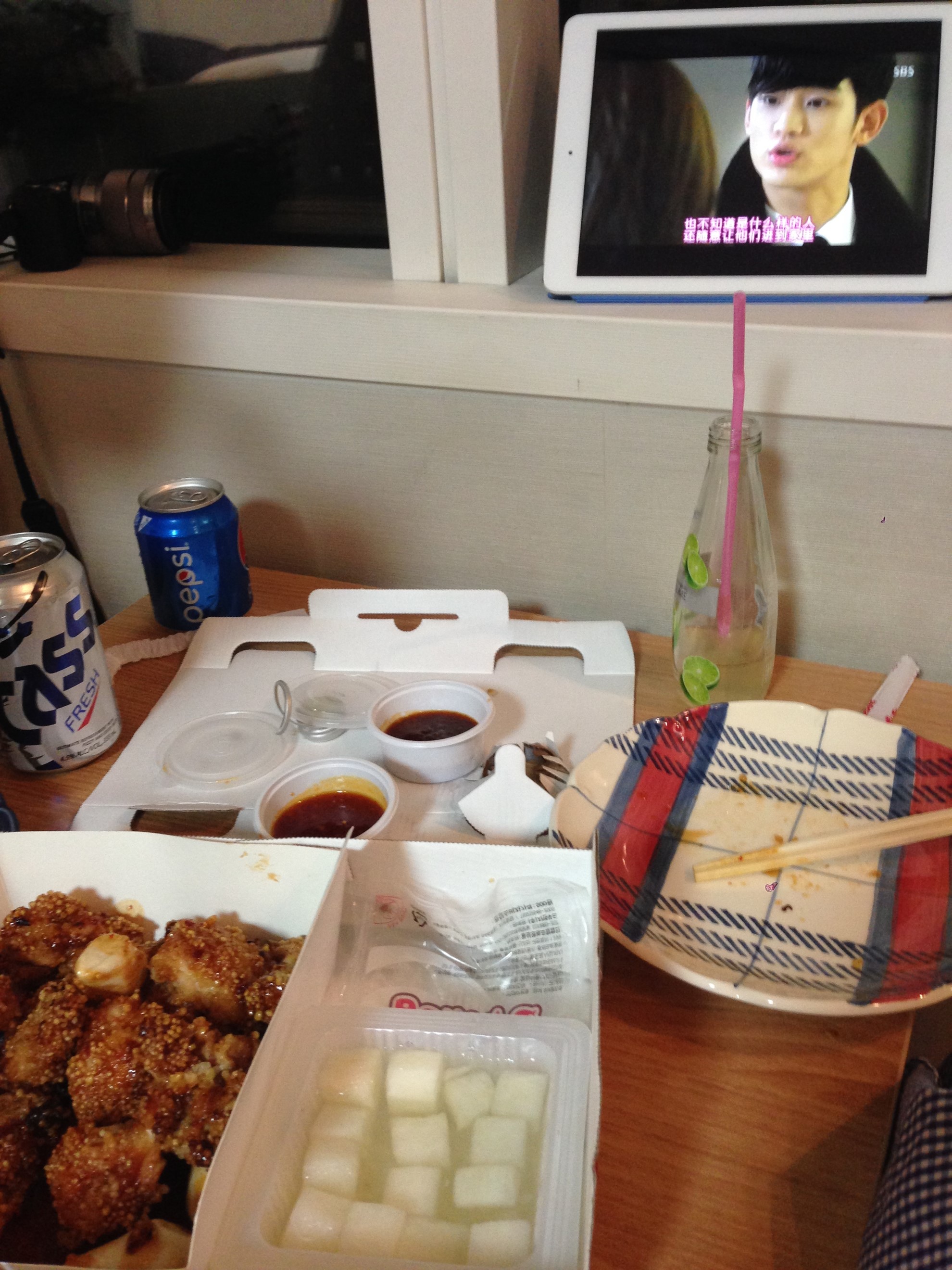 是個很棒的炸雞加啤酒之夜。下次一定要弄一個韓國當地號碼,才能順利訂外賣啊! 話說,今天我跟好在上海,發現居然有好幾家韓國炸雞連鎖店,包括僑村和FRYPAN,不過在上海吃韓國炸雞嗎? 再讓我考慮一下!