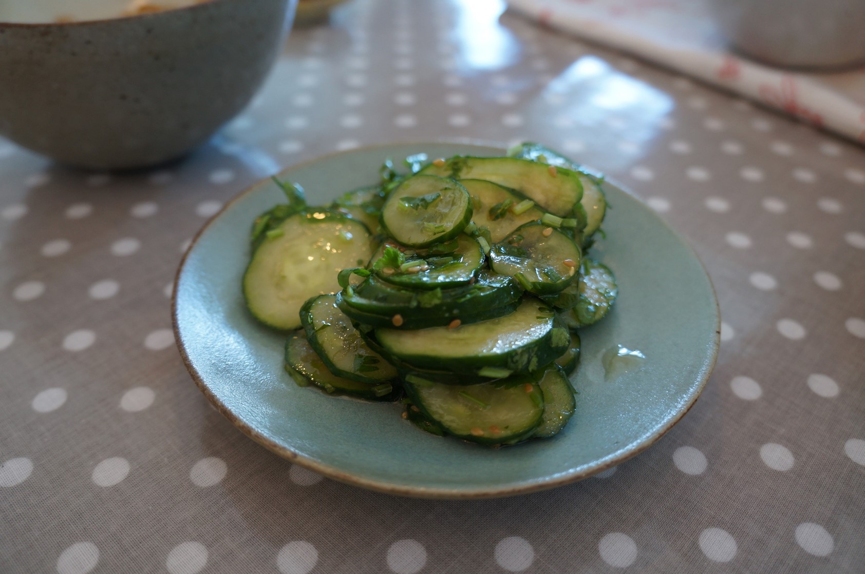 這是最近發現的神奇配方,用日本燒肉店"敘敘苑"的瓶裝生菜沙拉醬,搭配香菜末,醃小黃瓜真是美味無比,這敘敘苑的醬本身就有濃濃的芝麻和大蒜香,簡單的蔬菜碰上它馬上就增色許多。