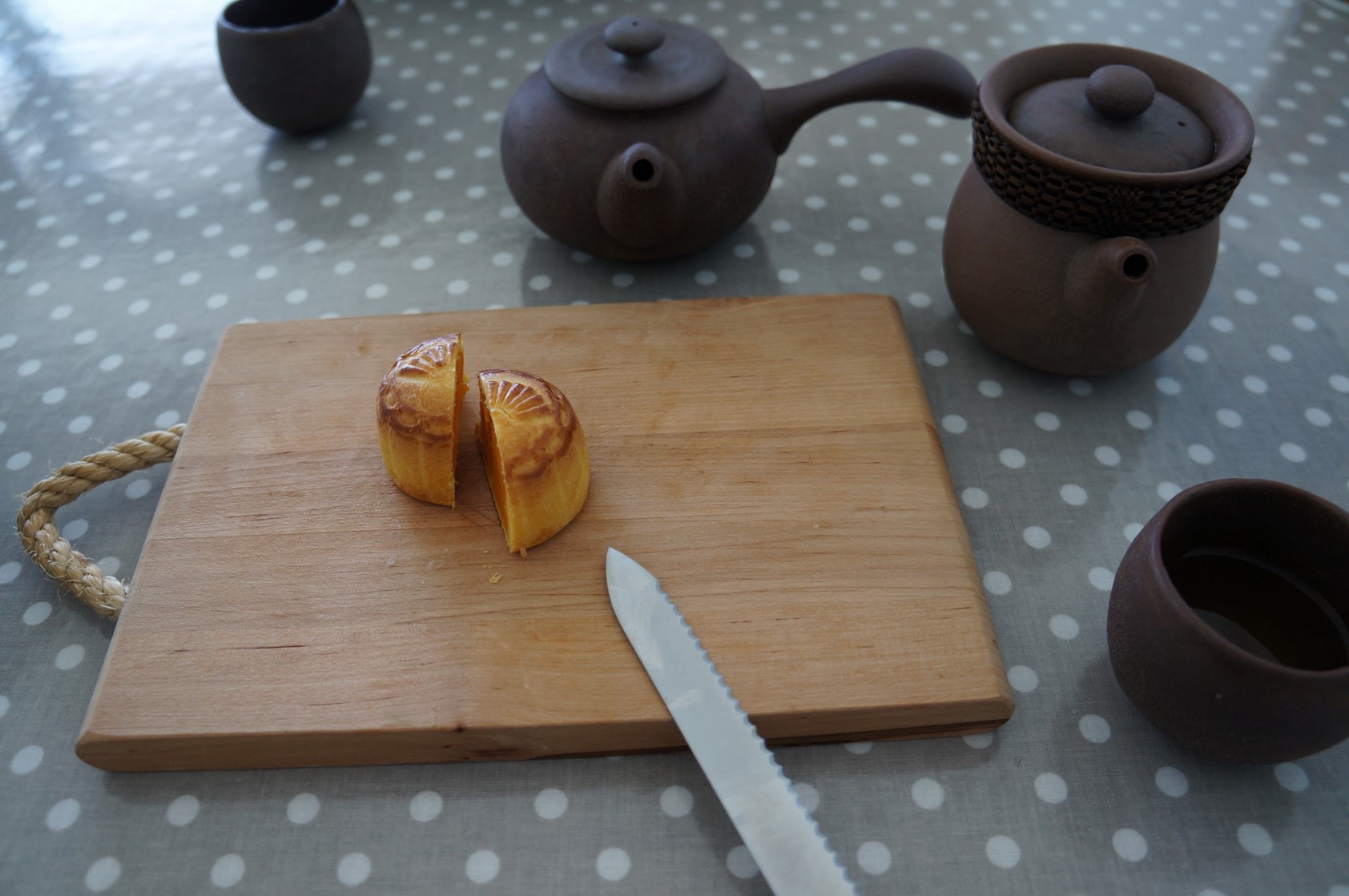 周末午後的下午茶,台灣金萱茶配上奶黃月餅,期待著秋天的到來