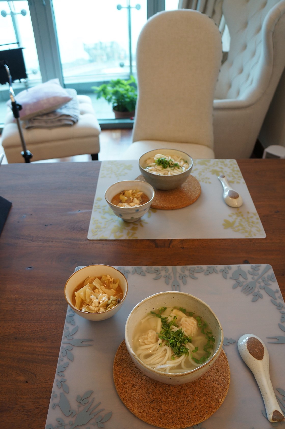 簡易中餐,在香港很愛吃雲吞,超市賣有各種配料的雲吞,有蝦籽雲吞,雲吞皇,還有像餃子一樣加入各種蔬菜配料的也有,這天簡單煮了美瑛帶回來的北海道小麥製成的麵條,就成了雲吞面,配上前晚剩下的鮭魚味增湯,簡單好味。