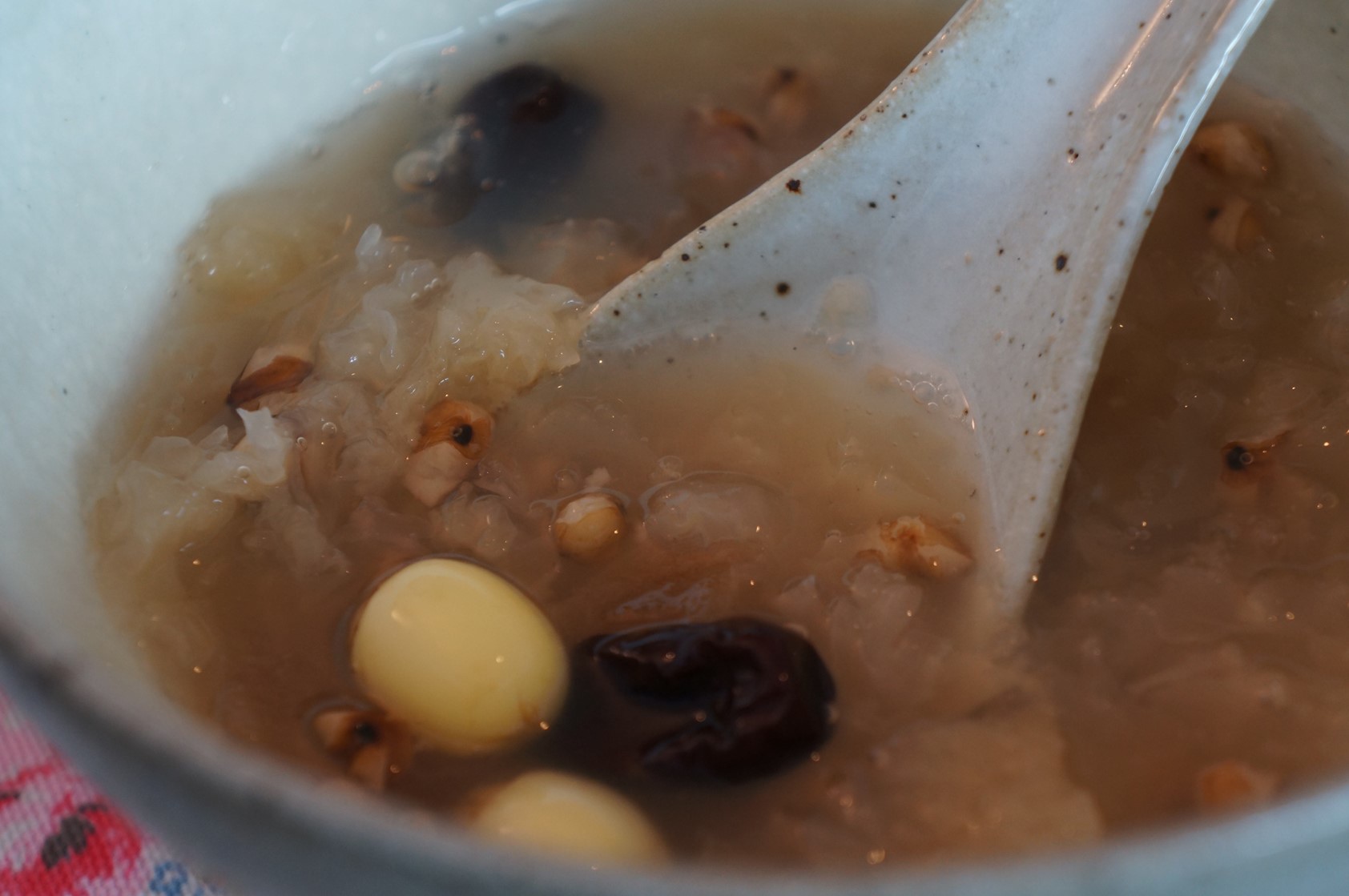 蓮子的清香和冬瓜糖的香氣伴隨著紅棗真是絕配,銀耳膠質在熬煮後整個釋放,加上純天然的冬瓜冰糖,湯底自然就有種勾芡後的感覺,吃完一碗碗上還有一層光亮的膠質,讓我真想不顧形象的把它舔光光。