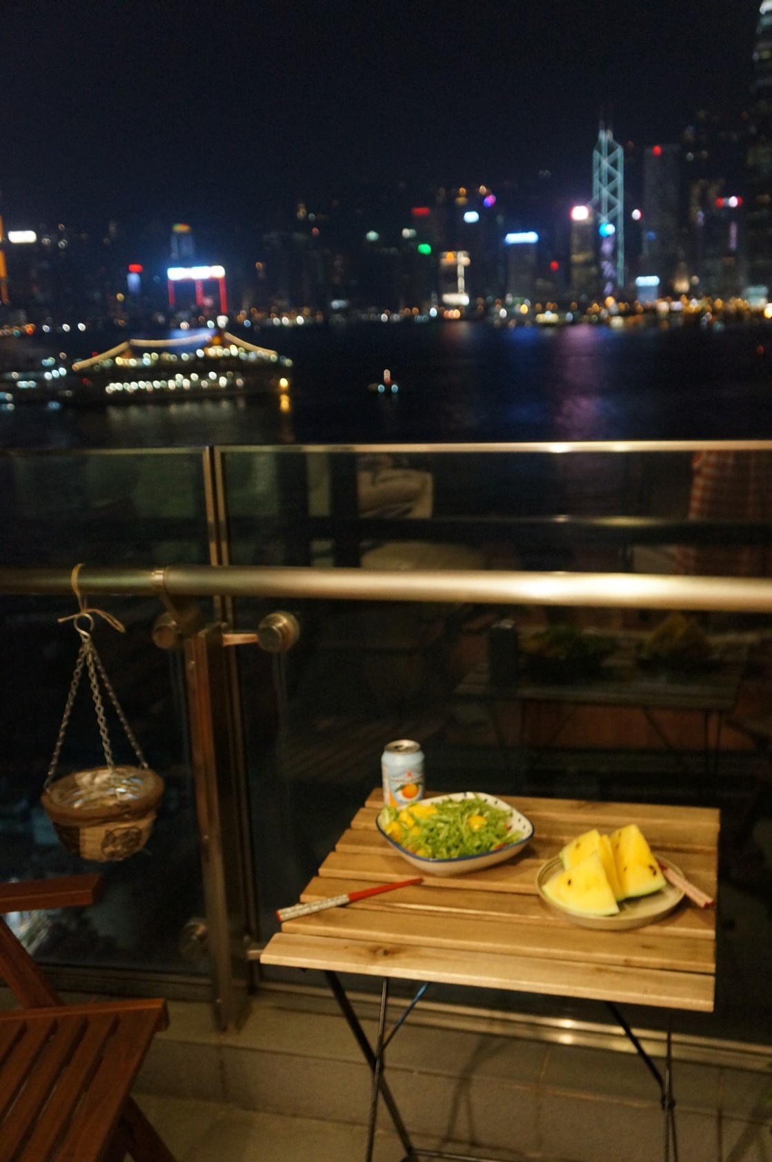 週六的夜晚和周日是最寧靜的時候,前面大工地停止施工,我們可以享受短暫的百萬海景陽台,把沙拉和西瓜移駕屋外,要是有冰啤酒那就更棒啦!