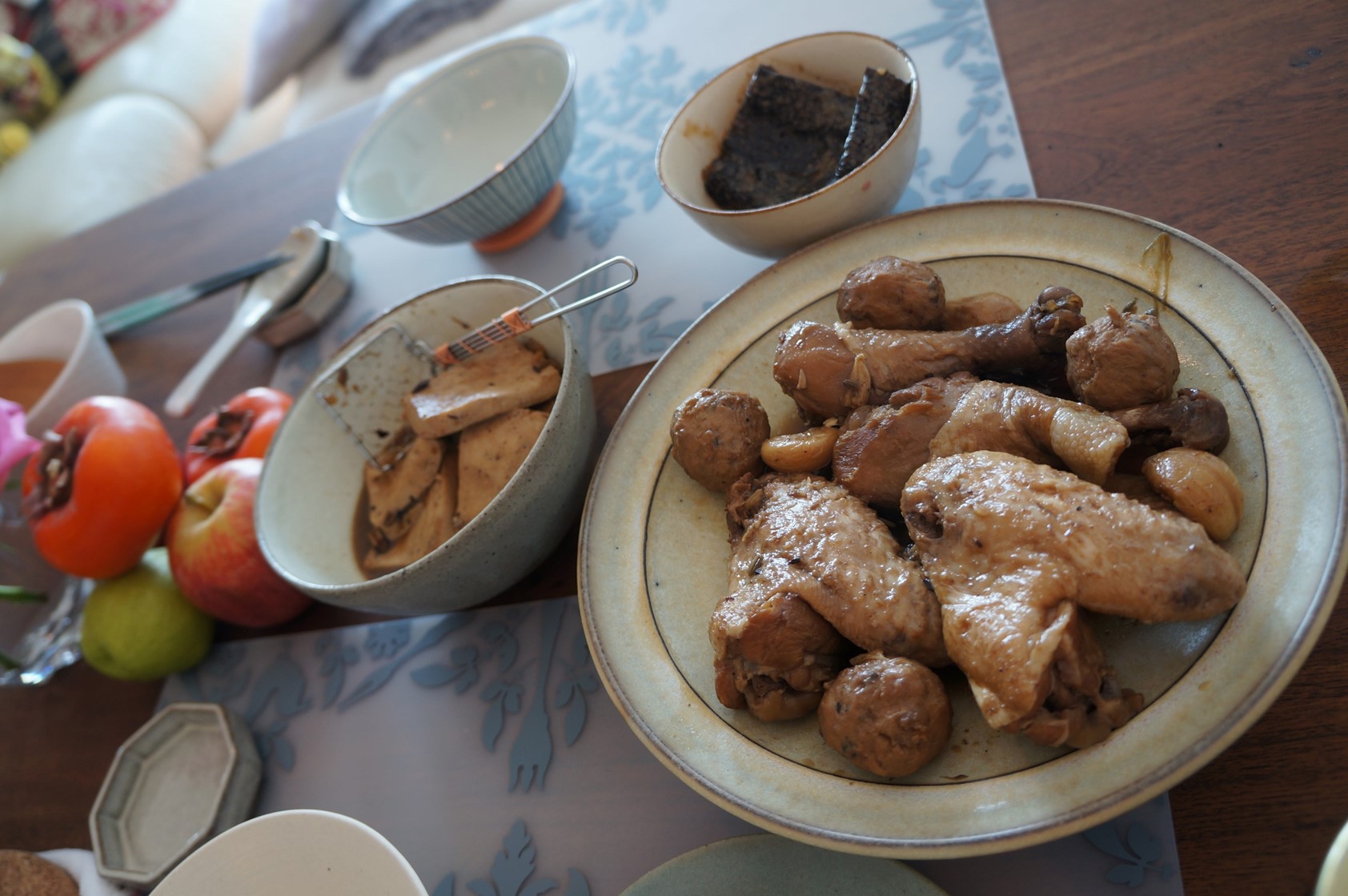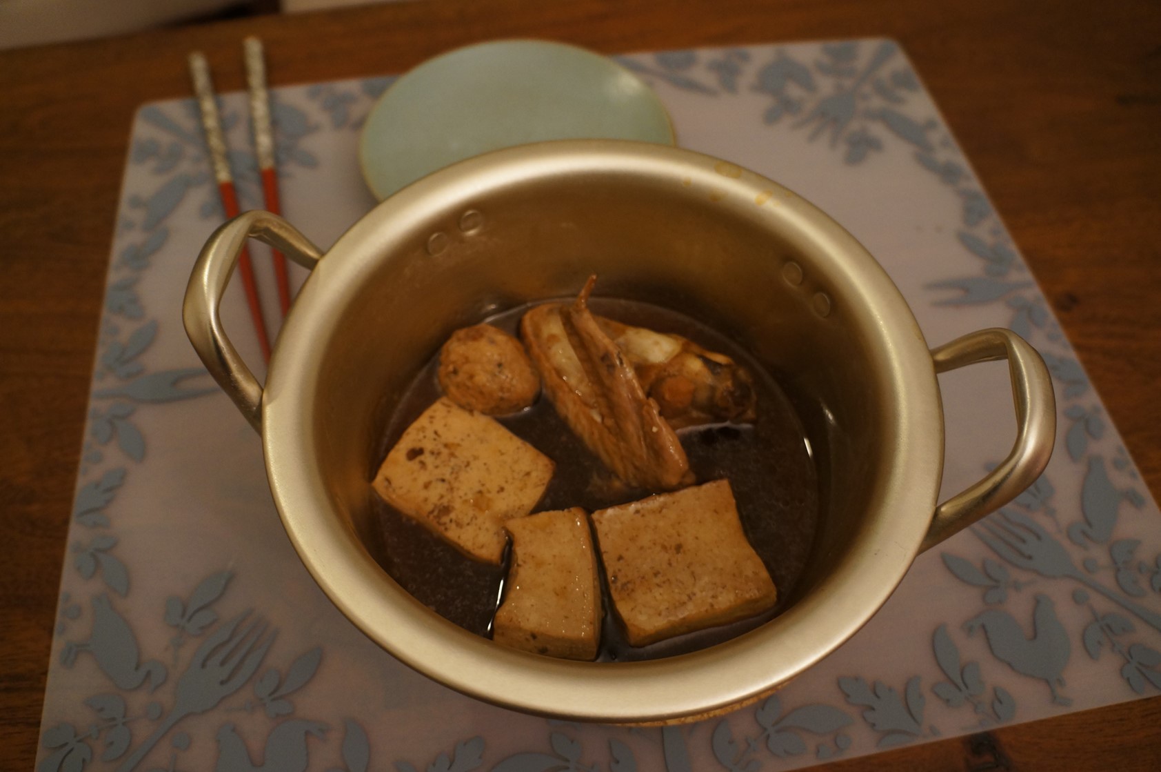 我一直很喜歡滷東西的感覺,滷東西時家裡都會瀰漫濃濃滷味香,我一點也不介意用現成滷包,甚至還會督加一點八角呢,樓下沒有雞爪,只好全用雞翅,我也愛吃滷豆腐,加了很多豆腐,但是豆腐先不吃,放進冰箱過一兩晚味道更入。