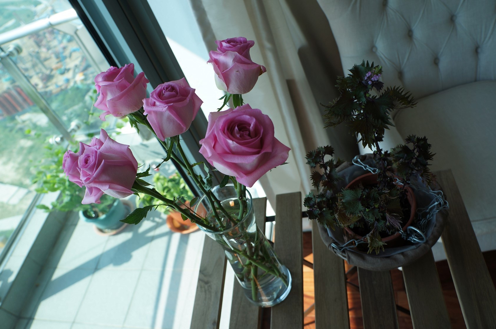 日本紫蘇居然開花了,還蠻可愛的。