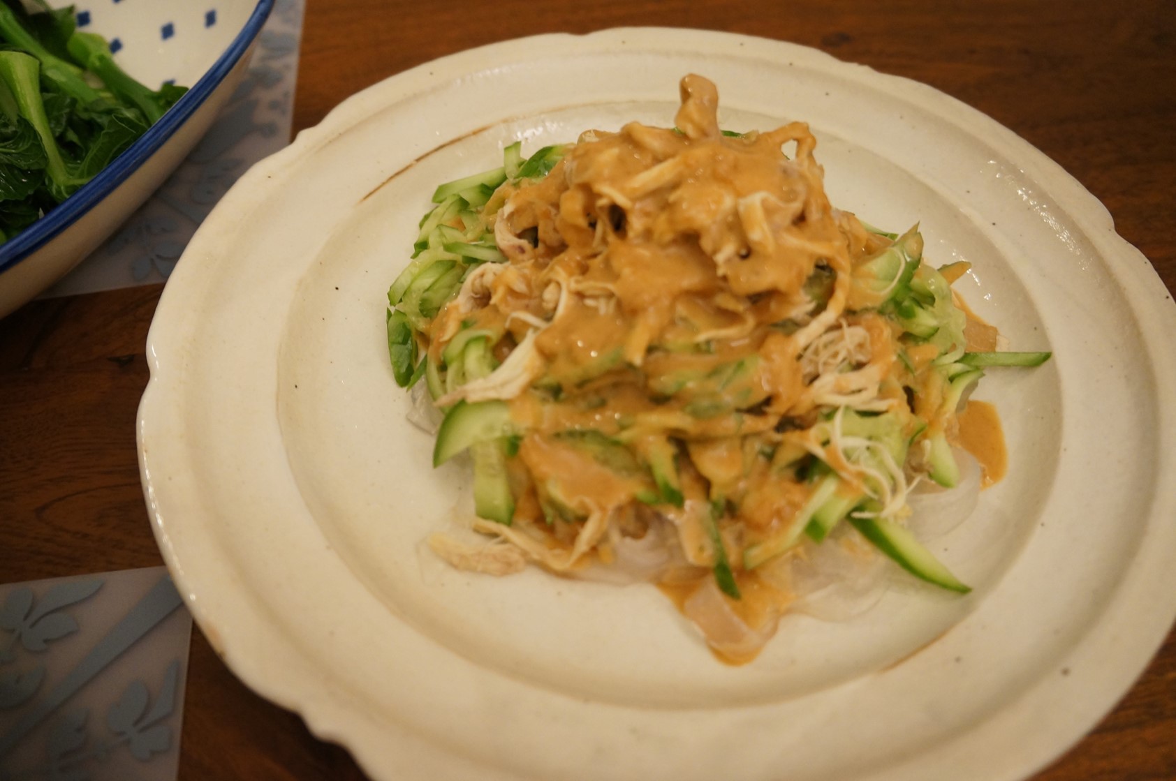雞絲拉皮,研究了半天還是覺得很難調出超滿意的醬,香港的食譜多是用花生醬調,我還加了點芝麻醬但有時會帶苦味,繼續嘗試囉。