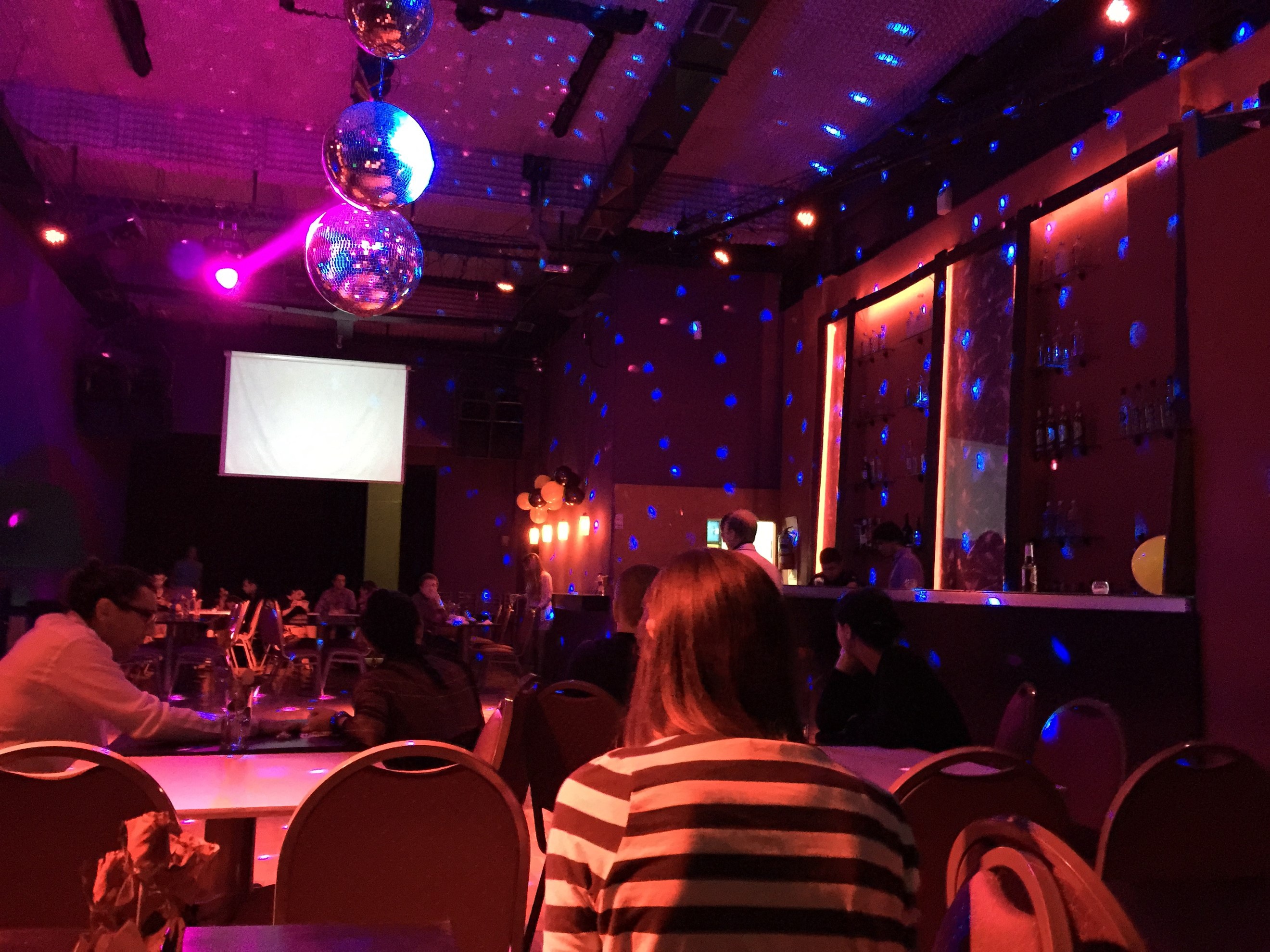 我們也是很想有氣質的看本書,但是都是西文的書籍,剛好接下來要上一堂探戈課,就坐在舞台上點了漢堡來吃,沒錯,是舞台,因為現在舞台改成一個餐廳,很妙,坐在舞台上東西好像在表演一樣,舞台上還保留了各種燈光、控制的裝置,很有臨場感。
