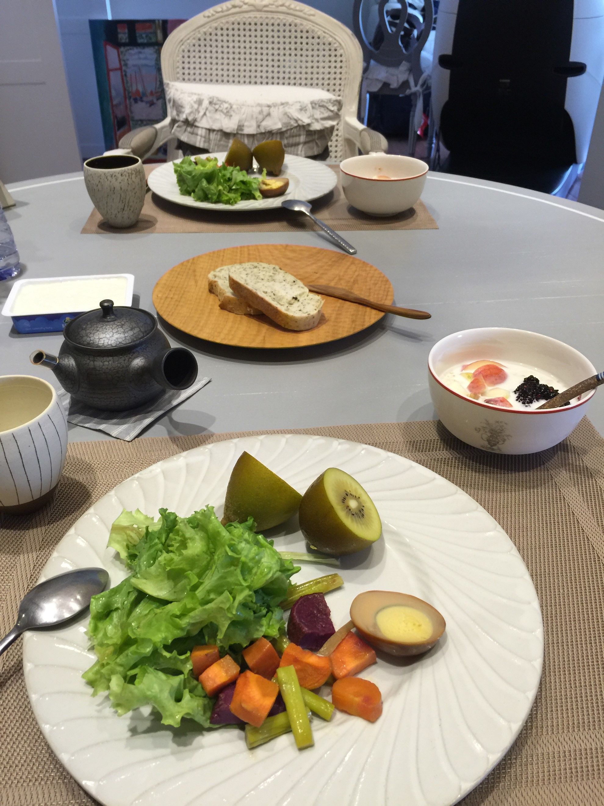 這天早餐是前一晚就泡的德國有機麥片跟真的初鹿牧場牛奶,配上周奶奶今年做的桑椹果醬(真是超好吃!),配上我的瓶裝沙拉,配上半顆松齡滷味的滷蛋