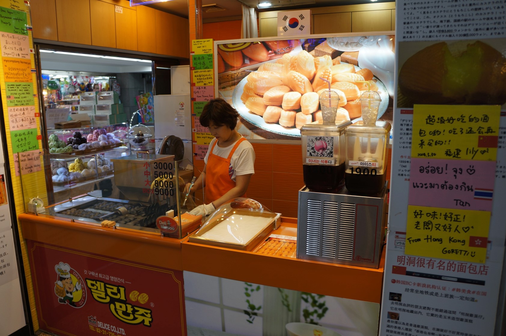 在地鐵站看到這間貌似鯛魚燒的東西,反正肚子空空還沒吃早飯,熱呼呼的買了填肚子,內餡是奶油路線的。是說韓國這種像雞蛋糕跟紅豆餅的變形結合的類似東西很多唷。