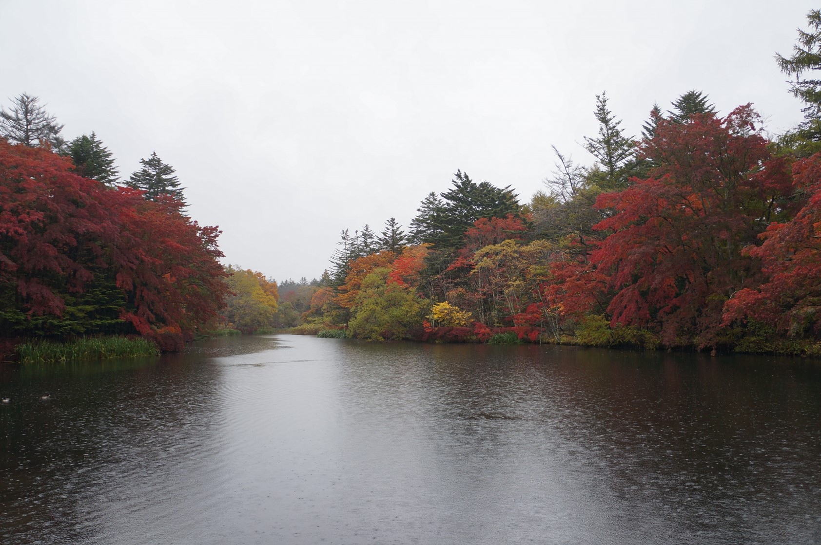 (婚禮前一天10/22,大家都陸續到達,我們包了一台大巴,15個人浩浩蕩蕩出發遊覽三個景點,可惜全程下雨,又濕又冷,圖為雲場池楓紅美景)