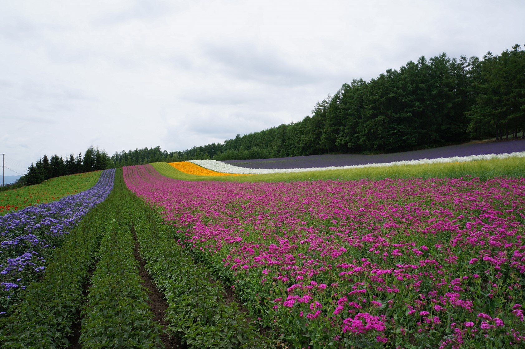七月中造訪北海道的重頭戲是賞花,看到M多年前六月跟家人來同樣的景點,到處光溜溜的一點花都沒有,這次更加慶幸有見到像是明信片般的花田,又運氣好的碰到乾爽晴朗的天氣,真是美不勝收!