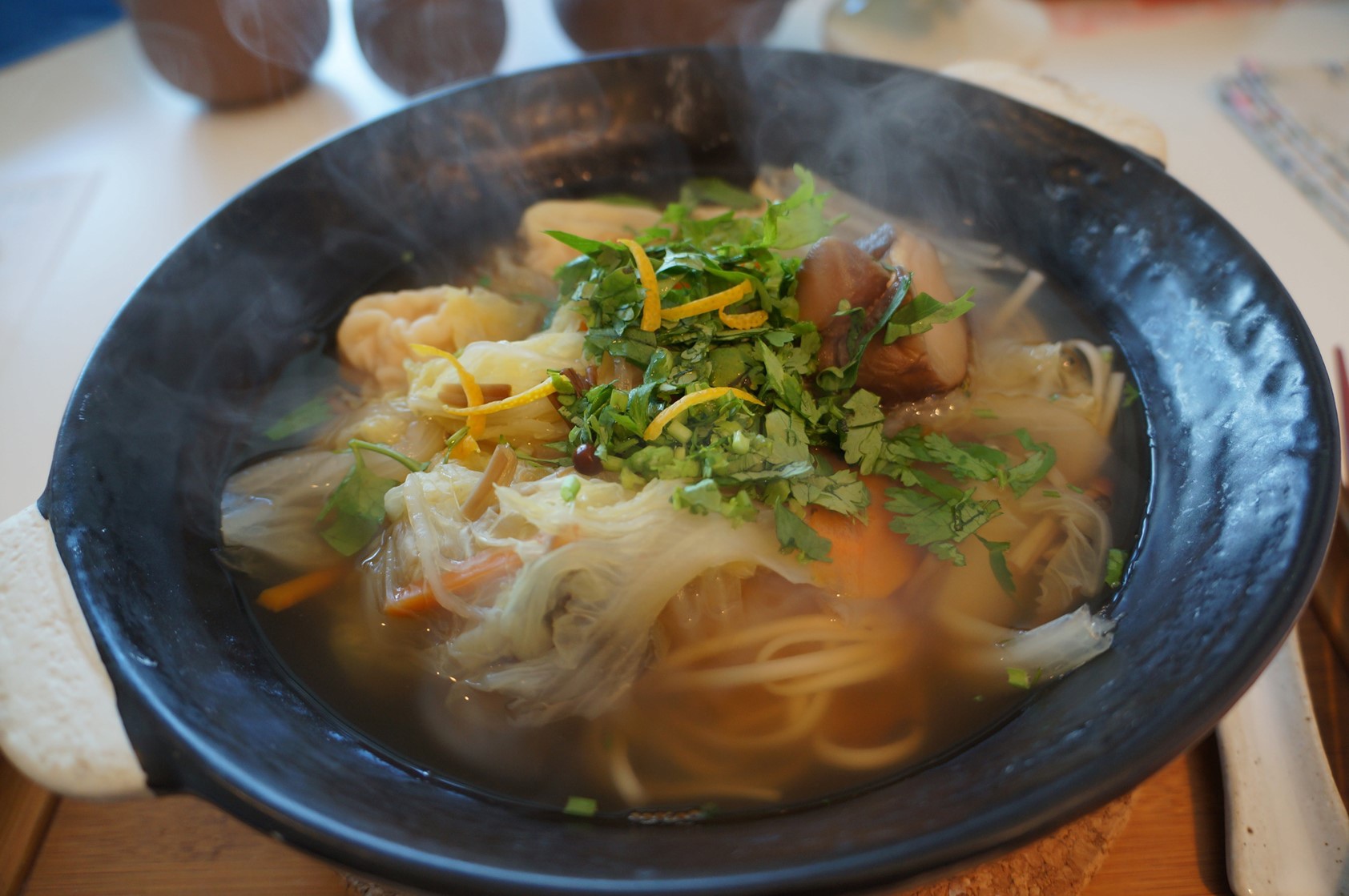 還有一個驚喜的小發現,在日本常常吃到柚子皮或柚子汁入菜的料理,他們的柚子約當我們的柑橘類,香氣更勝,奈何香港找不到日本柚子,這天發現我們家冰箱有一顆萬年黃檸檬,不知哪年哪月買的,突然看到腦中閃過,ㄟ或許可以用它的皮入菜喔,拿起一聞,居然有種成熟的天然香氣,比一般新鮮的檸檬又更上一等,想陳皮也就是這種概念吧,但是因為這仍是完整的檸檬,水分都在只是稍微萎縮,用削皮刀削了點黃色皮,果真有誘人的香味,心血來潮把香菜切了點末撒到面上,再撒點"陳年"檸檬皮,入口時充滿果香和香草的刺激,頓時食慾大開,即使熱呼呼的湯汁也頃刻見底,邊吃還邊得意洋洋自己的創意。